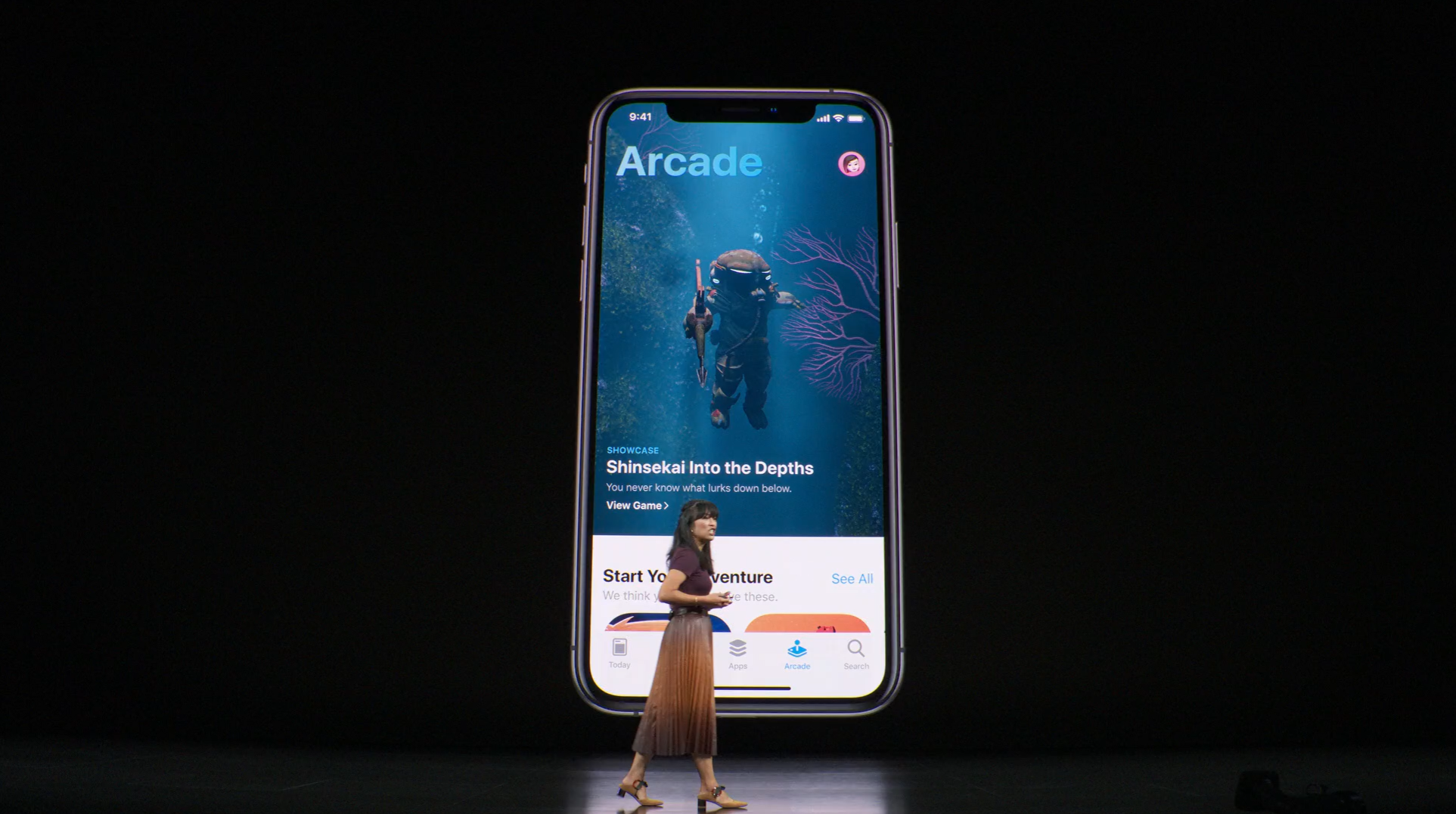 最初はApple Store。Apple Arcade。StoreにArcadeタブが増えるよ。コンシューマーゲーム市場に参入したいみたいな?