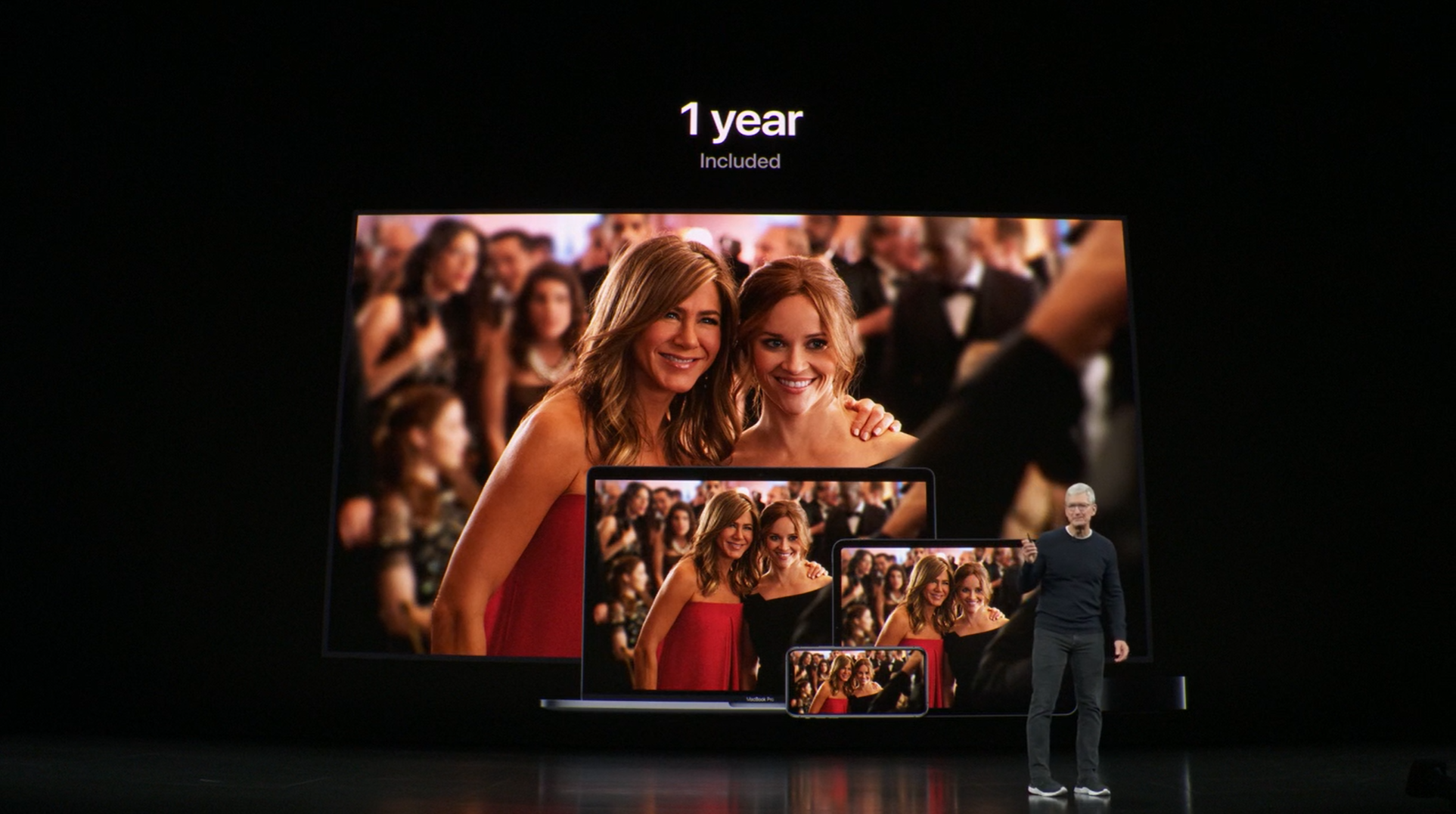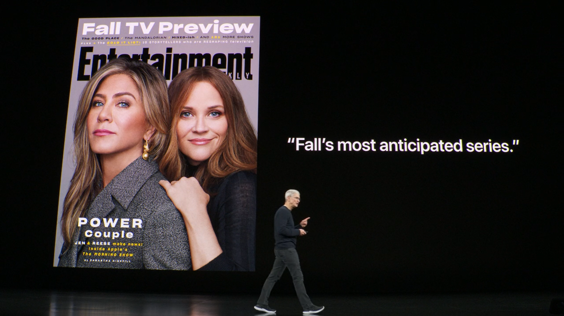 次はApple tv+。まずは夏から始まった番組の紹介とかから。SEEとか。(わからん)11月1日から新しいムービーとかでるとか月額4.99ドルで家族が見放題みたいな。単品レンタルはクレイジーらしい。1年間どのデバイス(Appleの)でも見放題みたいな。![]()