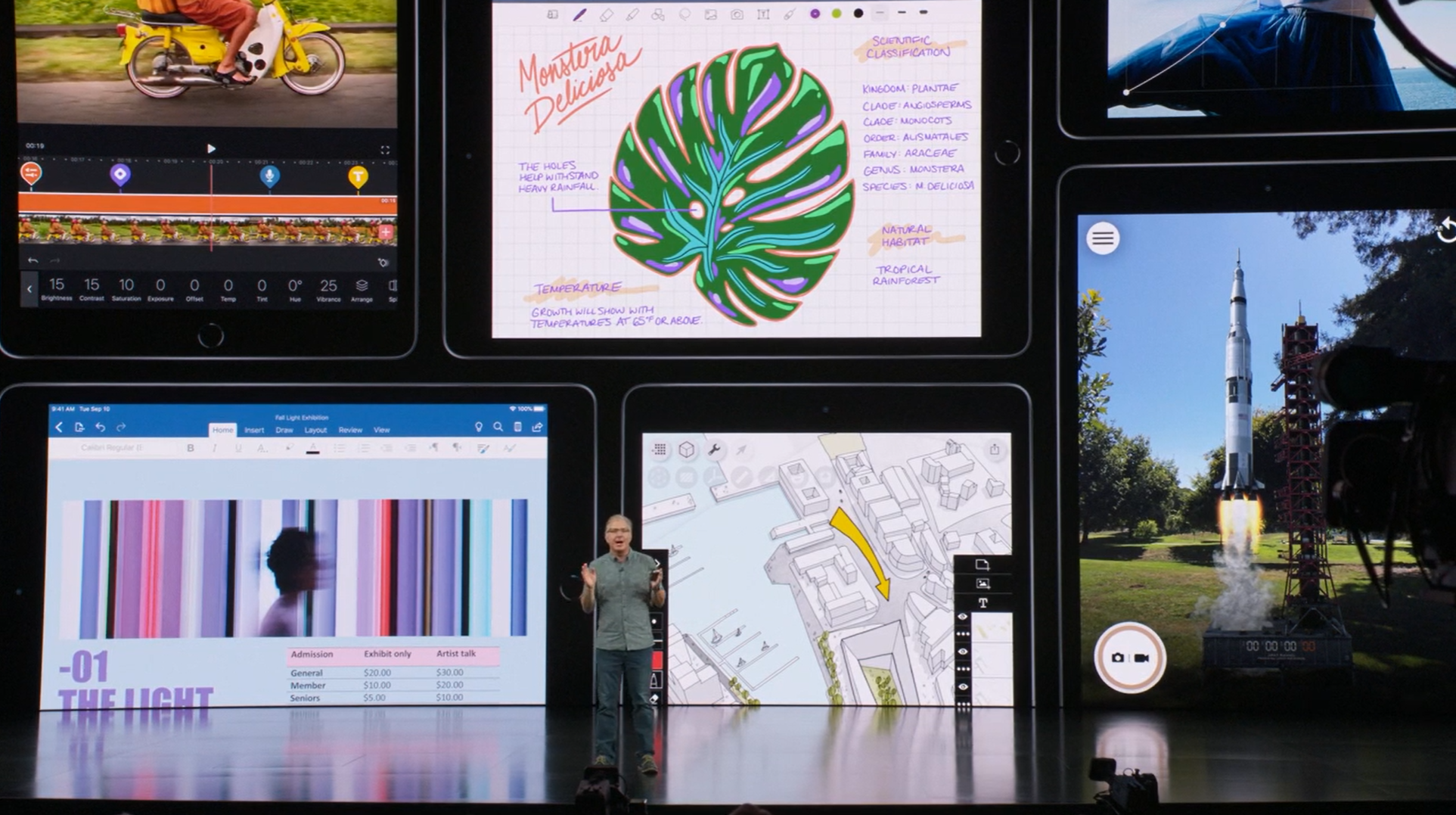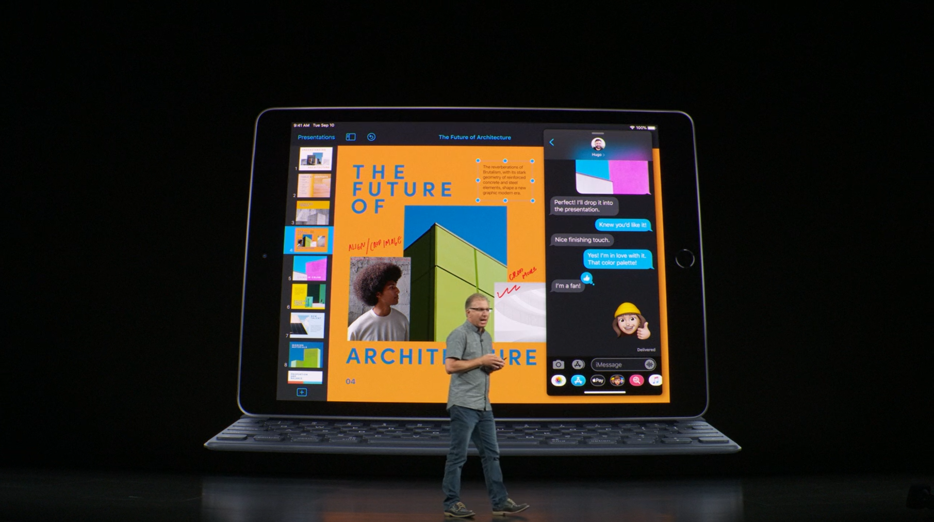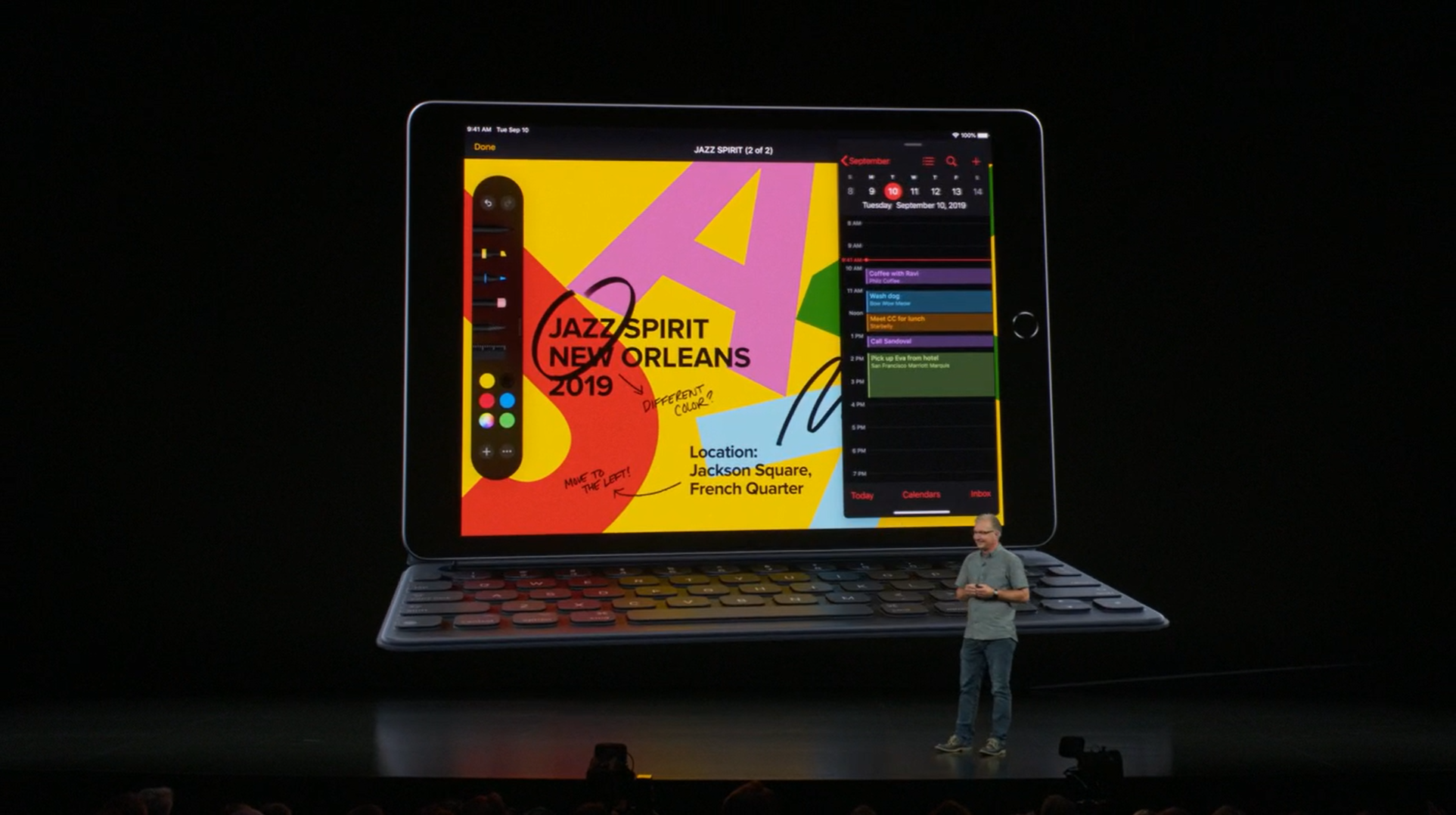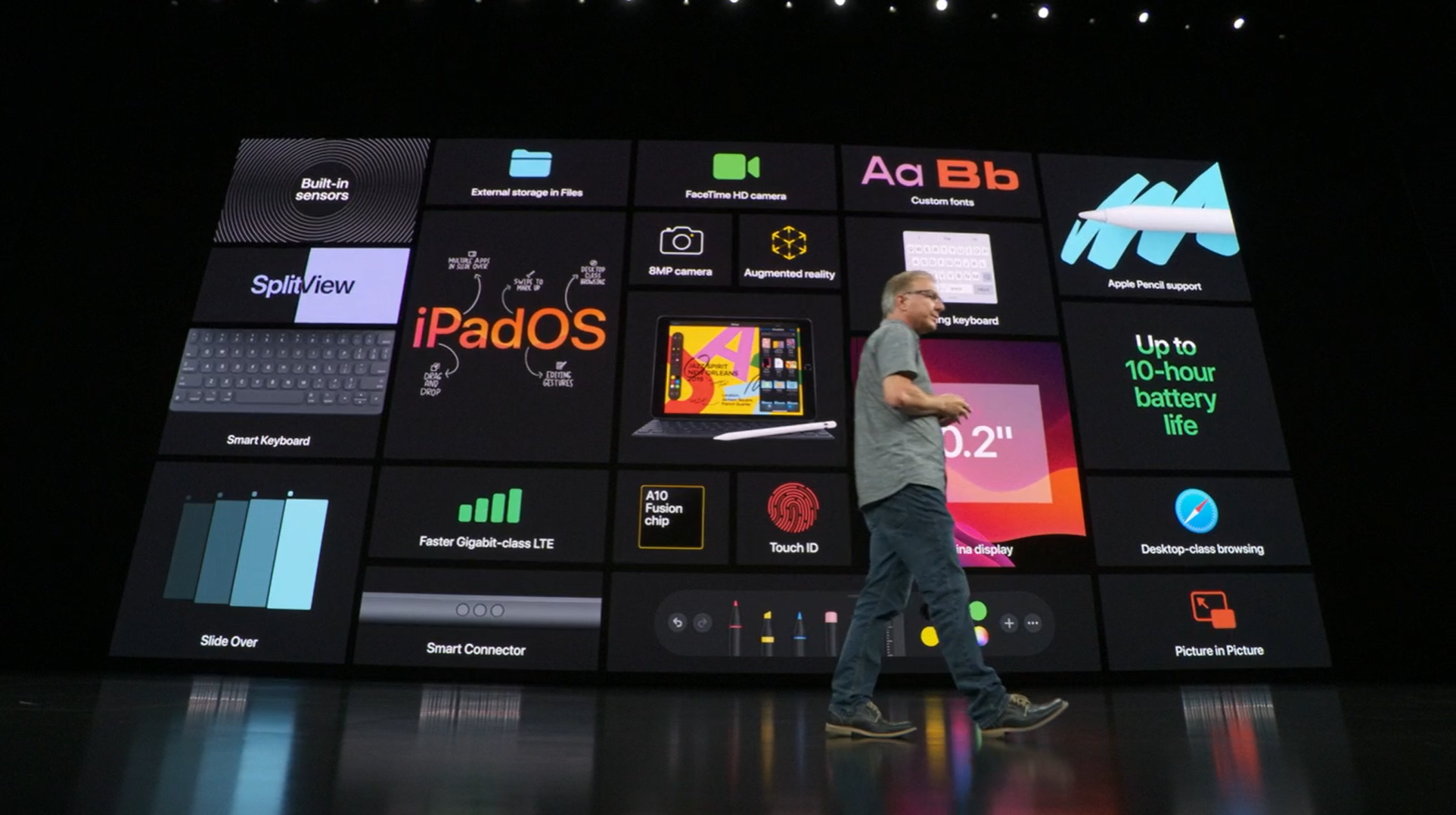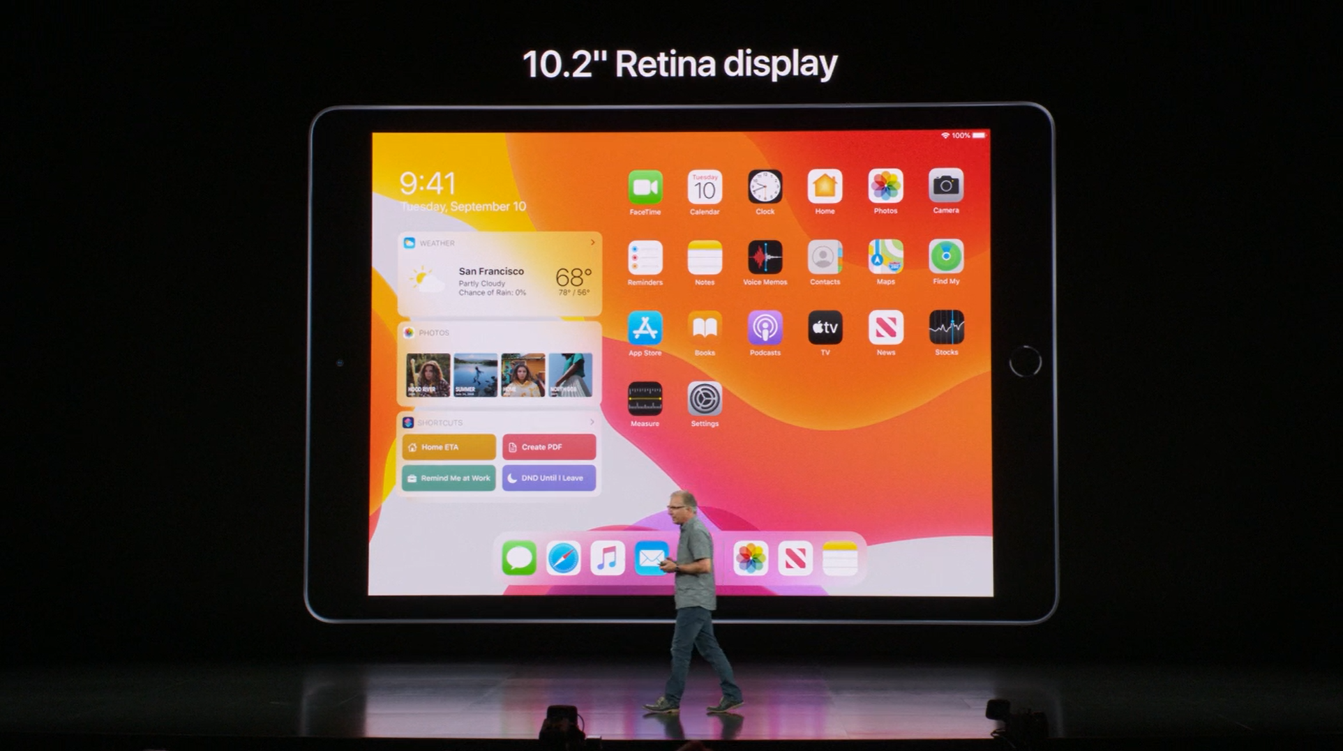 TVの次はiPad。iPadOSは今ベータで出てますね。ということで第7世代iPad。10.7インチ。PCなラップトップより2倍速いとかなんとか。マルチタスキングもあるよ。Apple Pencileもサポート(第1世代ぽい?)。100%リサイクルアルミ。329ドルだそうだ。Education向けはさらにお安く。今日からプレオーダーで30日に出荷。![]()