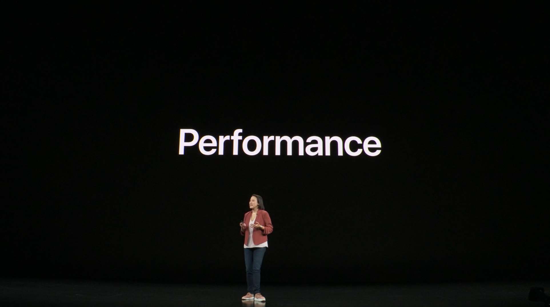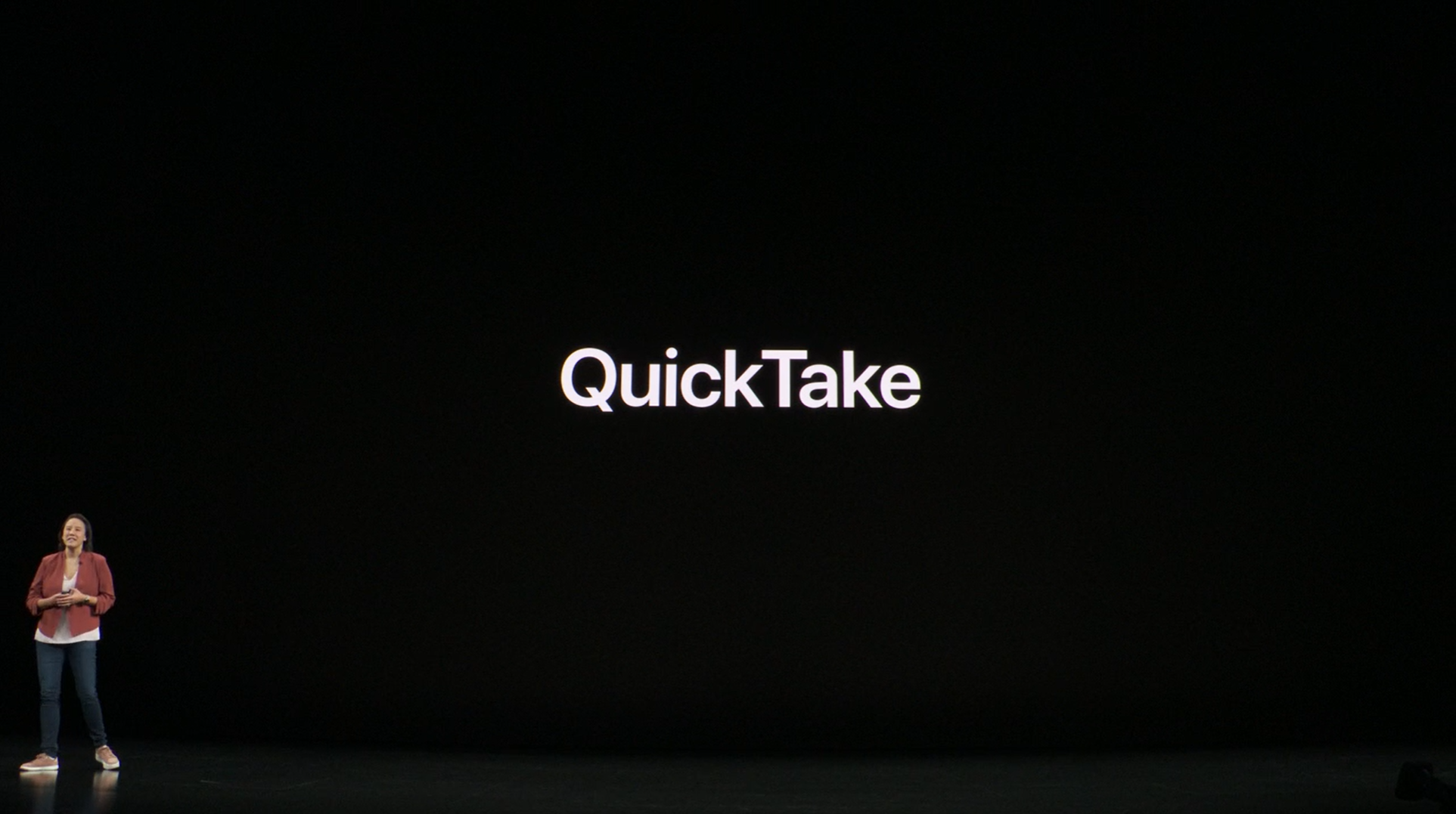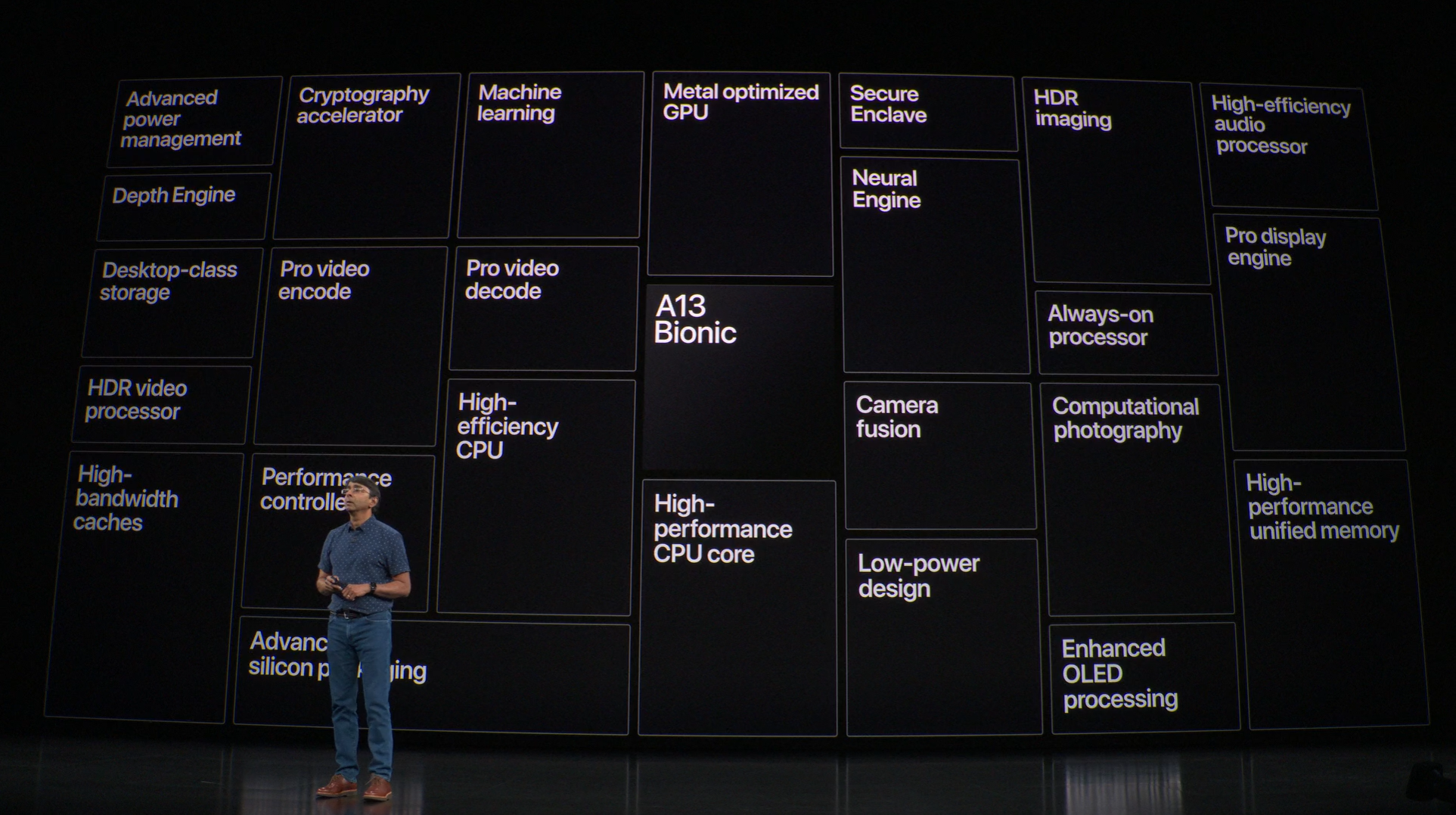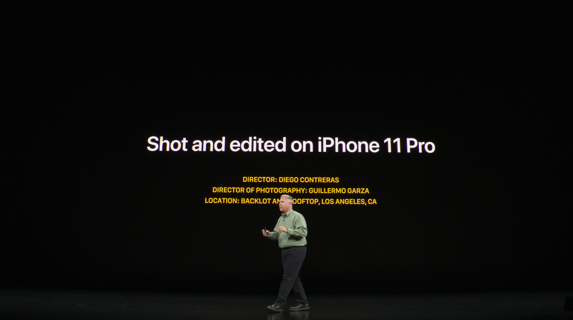 さてiPhoneの出番。顧客満足度99%らしい。ということで新しいiPhone 11。カラバリは6種類。ディスプレイは6.1インチ。カメラは2つ。背景消したりナイトモードとか。QuickTakeは写真でシャッター長押しで動画録画になるとか。スローモーションも上手に撮れるよ。チップは新しいA13かな。CPUもGPUも現行で一番速いとアピール(評価方法はよくわからない)。![]()
