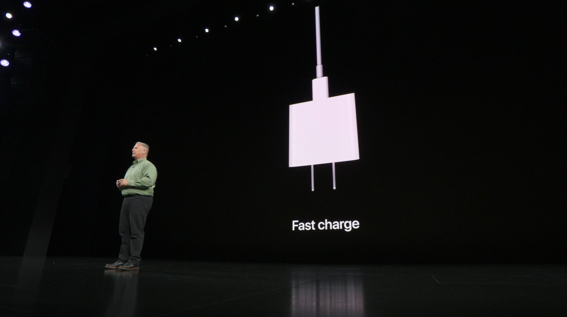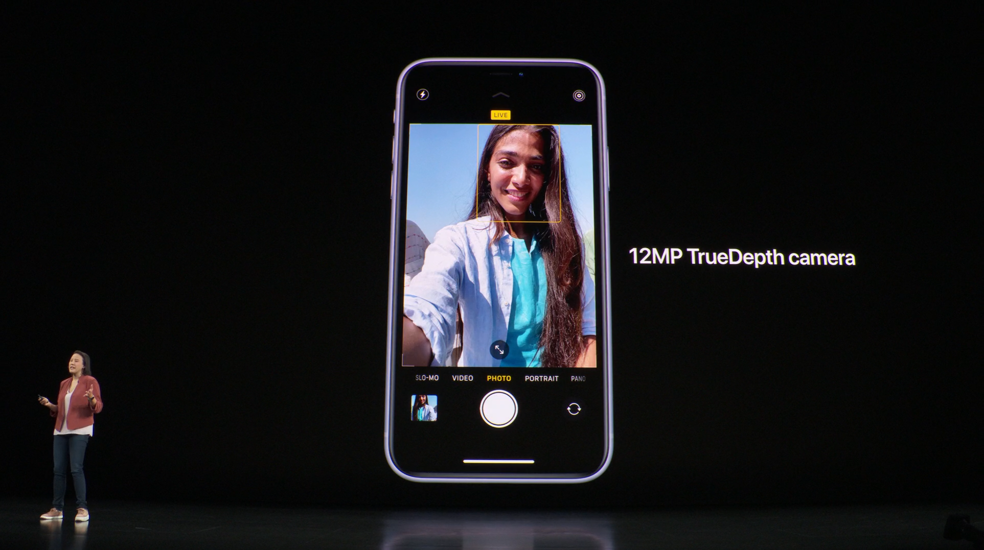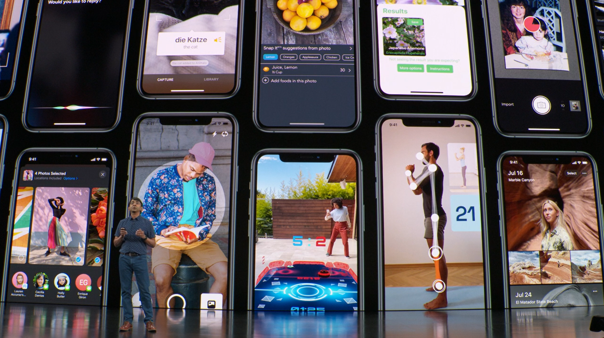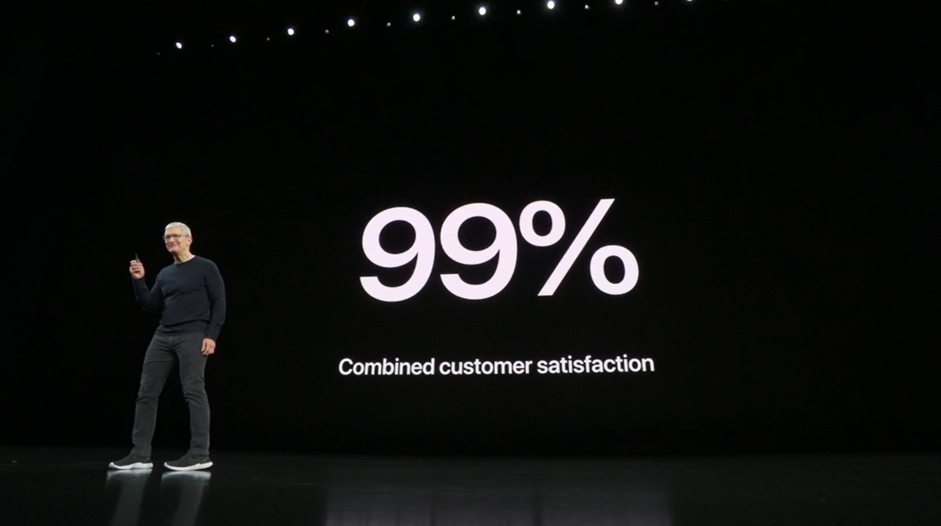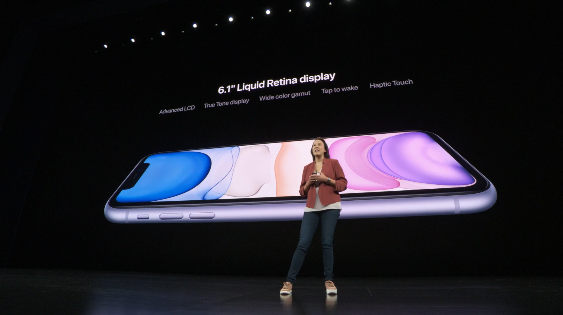 さてiPhoneの出番。顧客満足度99%らしい。ということで新しいiPhone 11。カラバリは6種類。ディスプレイは6.1インチ。カメラは2つ。背景消したりナイトモードとか。QuickTakeは写真でシャッター長押しで動画録画になるとか。スローモーションも上手に撮れるよ。チップは新しいA13かな。CPUもGPUも現行で一番速いとアピール(評価方法はよくわからない)。![]()