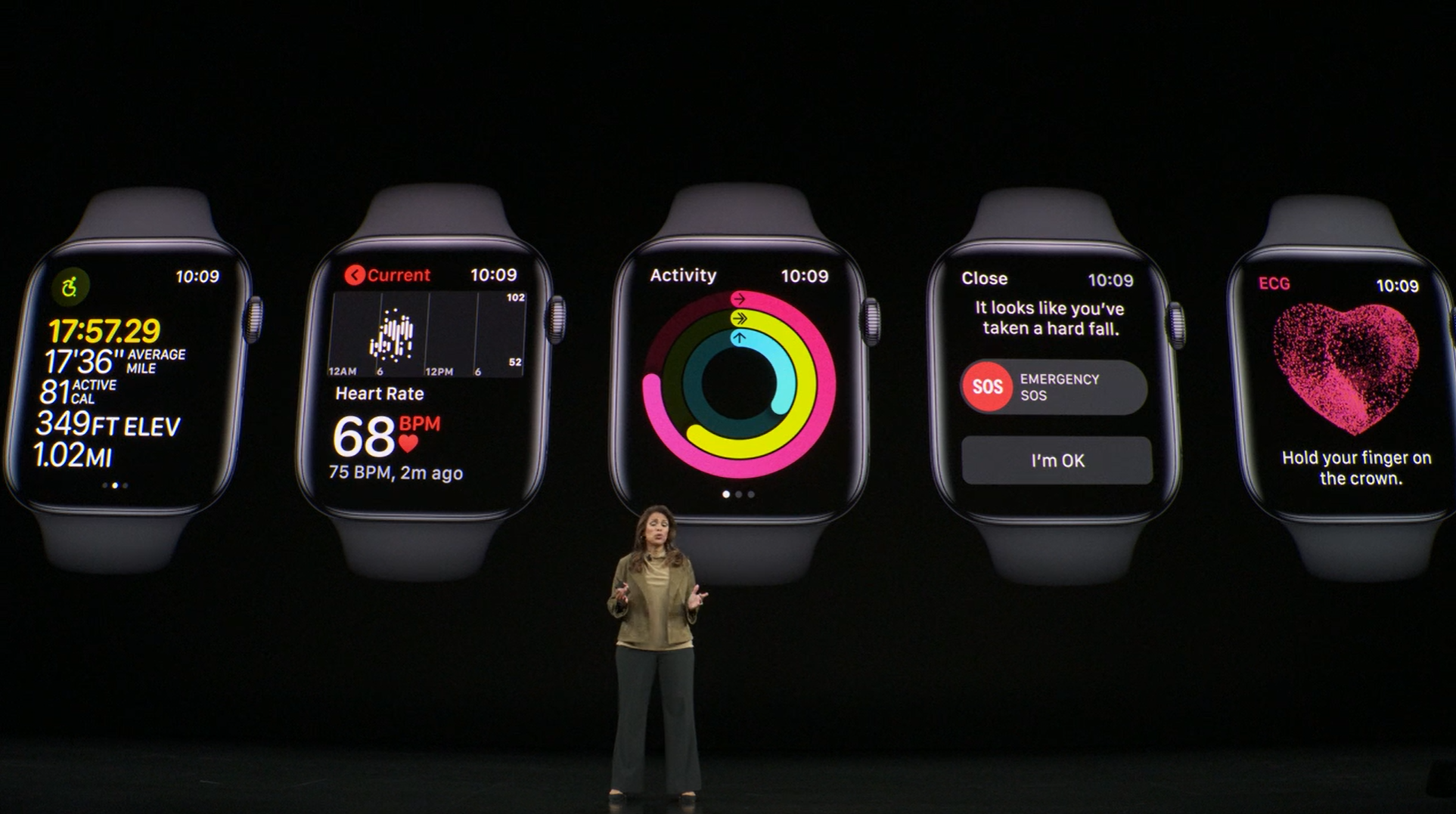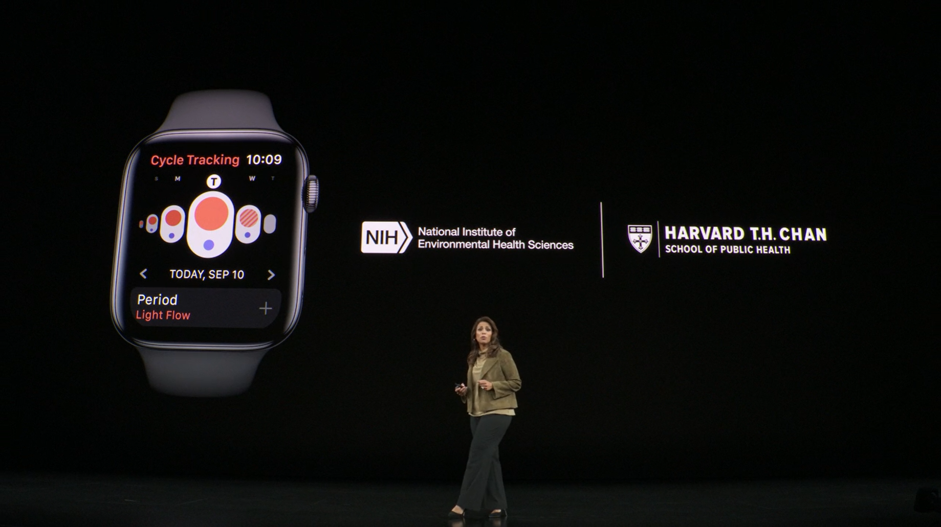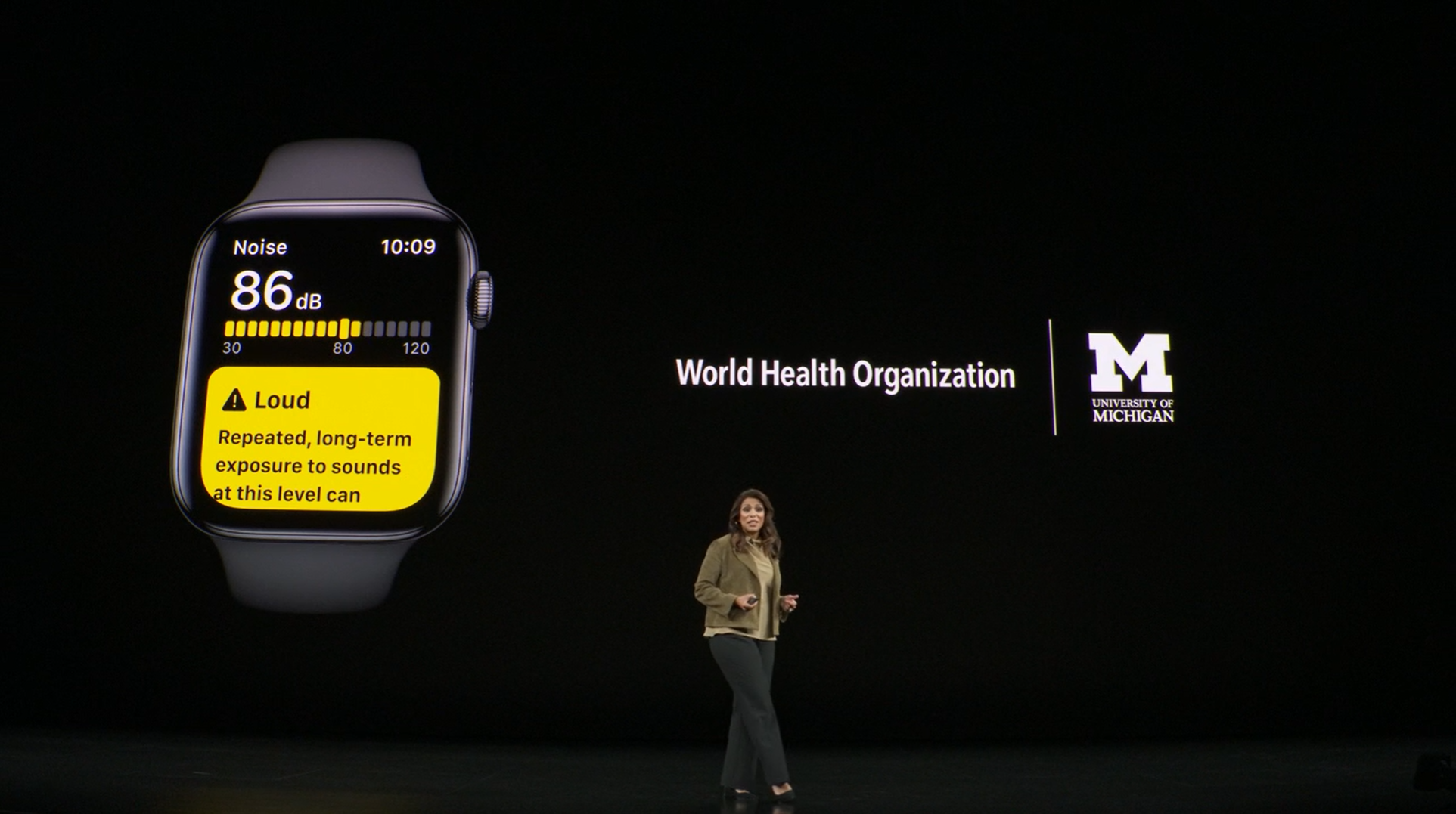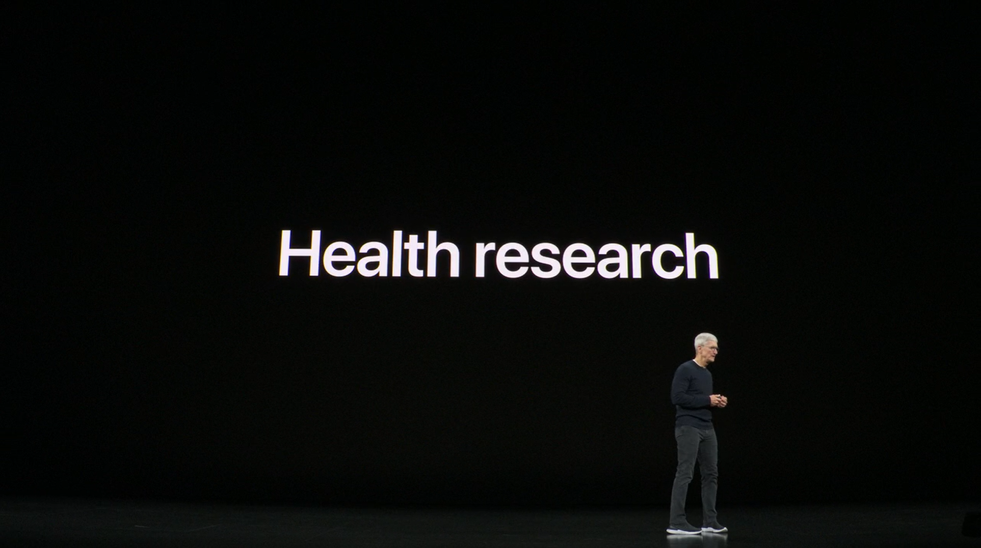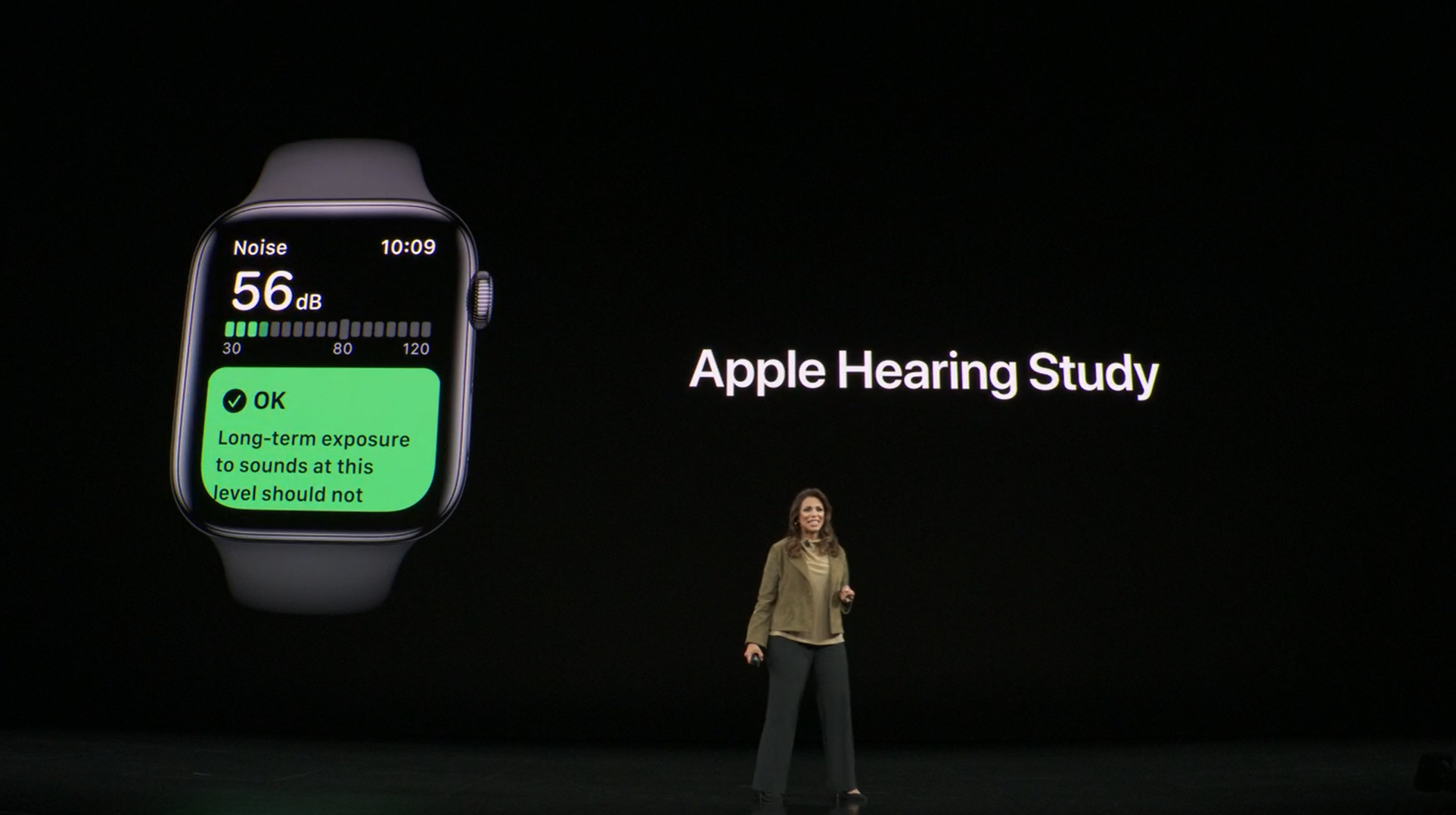 さて次はApple Watch。ヘルスケア分野で役立ってる感じのムービーから。Health research。Studyで新しく音(周囲や環境音)、サイクリングやウォーキング状況を学習するのかな。![]()