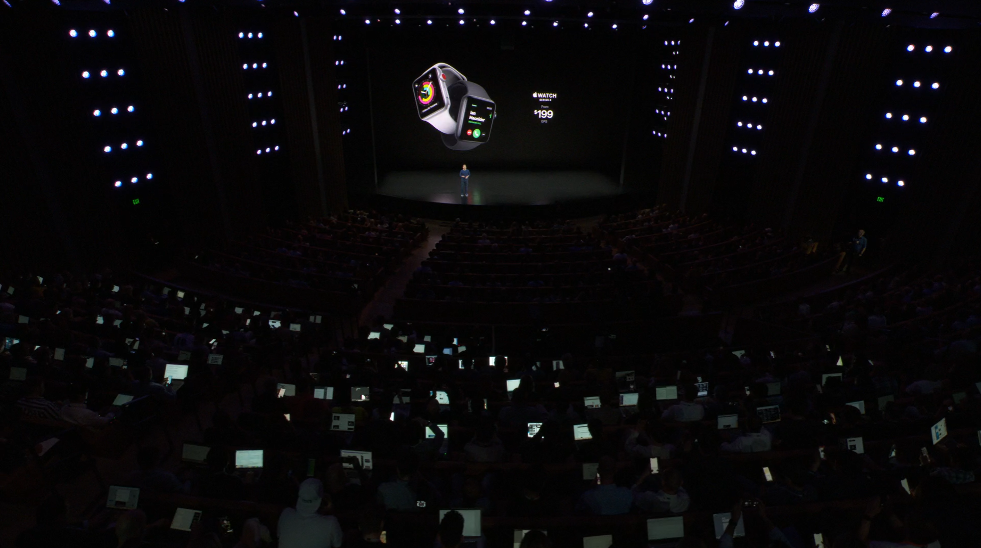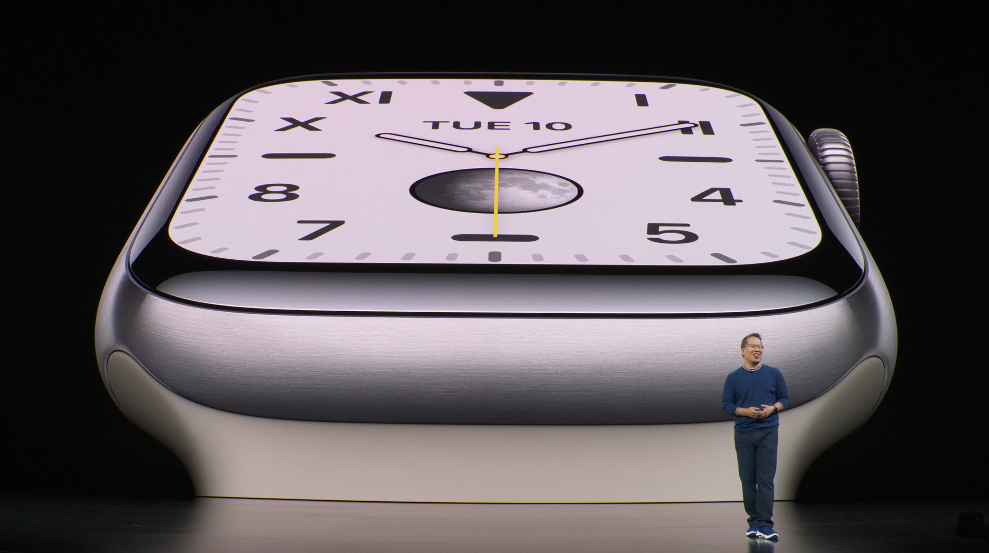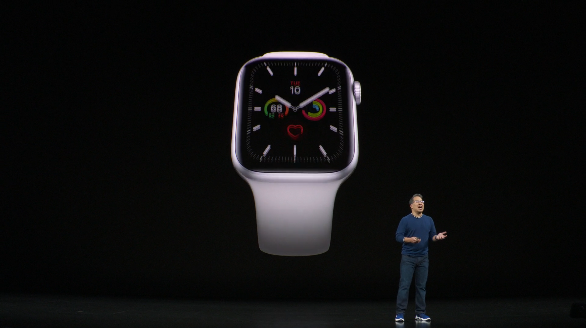 そして新しい世代のApple Watch。Always Onなディスプレイ。使ってないときも表示(ちょっと暗い)、タップして通常に。バッテリーも1日(All Day)フルでもつ感じ?コンパスも新しく。非常時コールもインターナショナルに。こちらも100%リサイクルアルミ。Titaniumもあるぽい。革バンドもシックな感じのが追加かな?GPSモデルが399ドル。オーダーは今日から、20日に出荷。Sereise 3は199ドルに値下げ。![]()