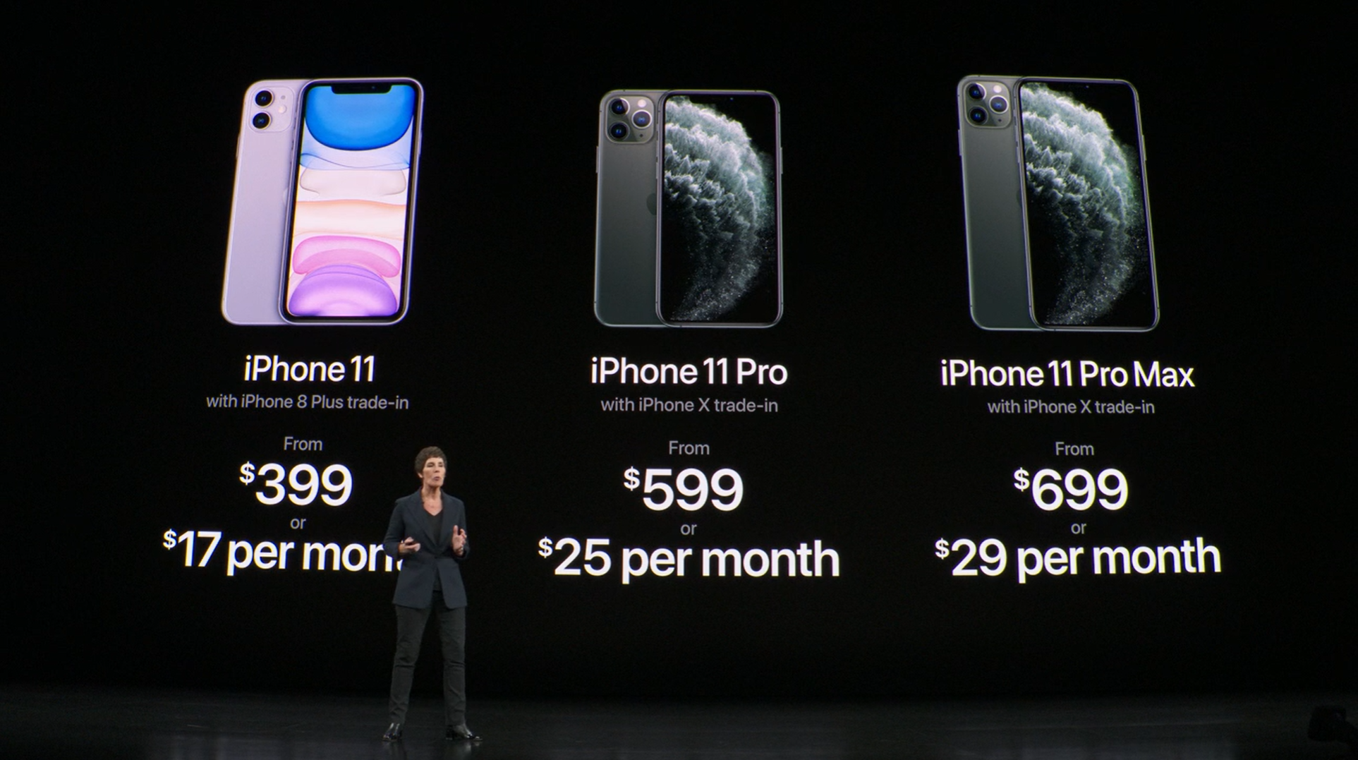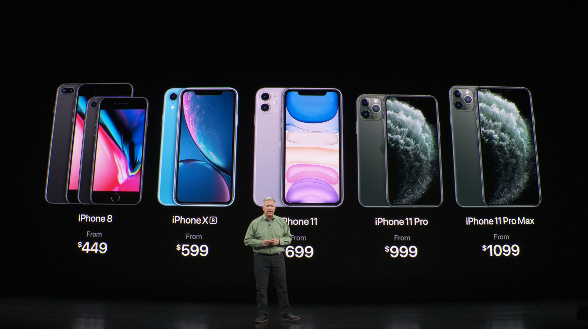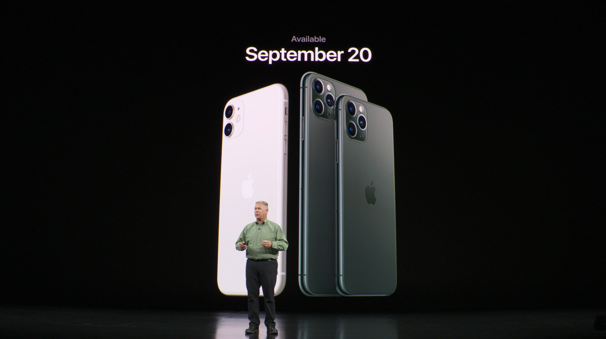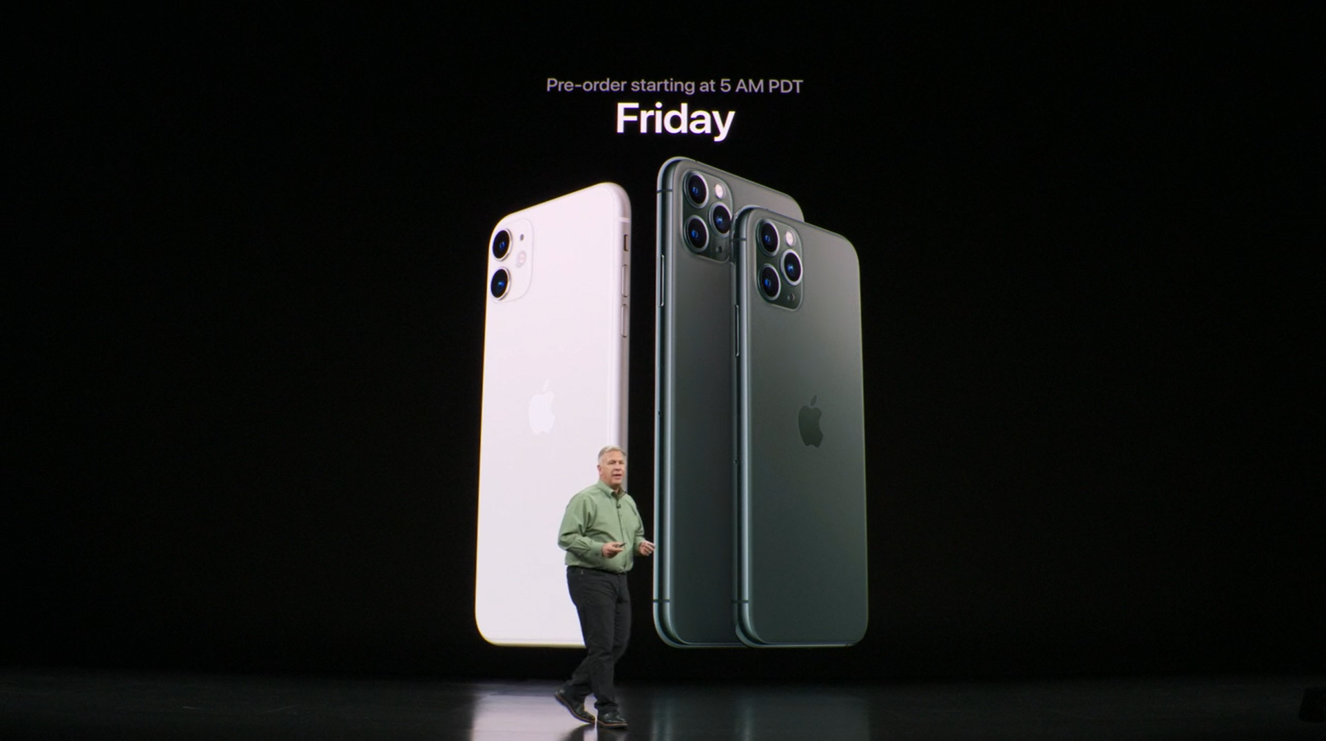 金曜日に予約開始、20日に出荷。11 Proで999ドル、11 Pro Maxが1099ドル。旧ラインナップ(8とXR)は値下げかな。![]()