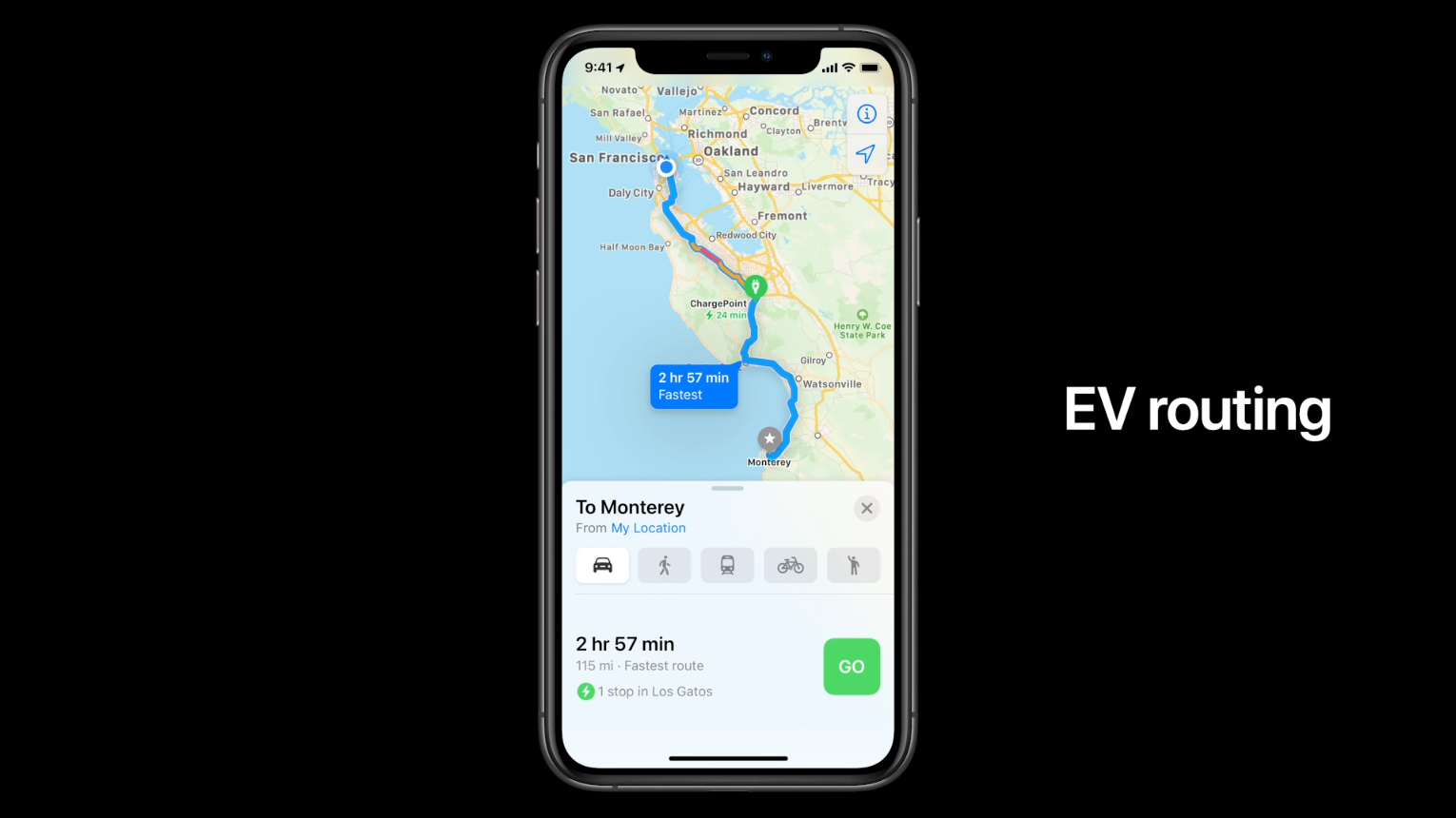 Mapsとか。ガイドの充実に自転車向けは標高でたり。ルート案内もEV向けに充電ステーション重視のルートを案内してくれたりかな。![]()