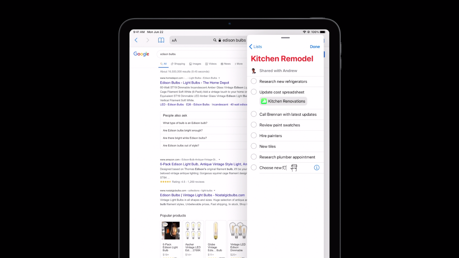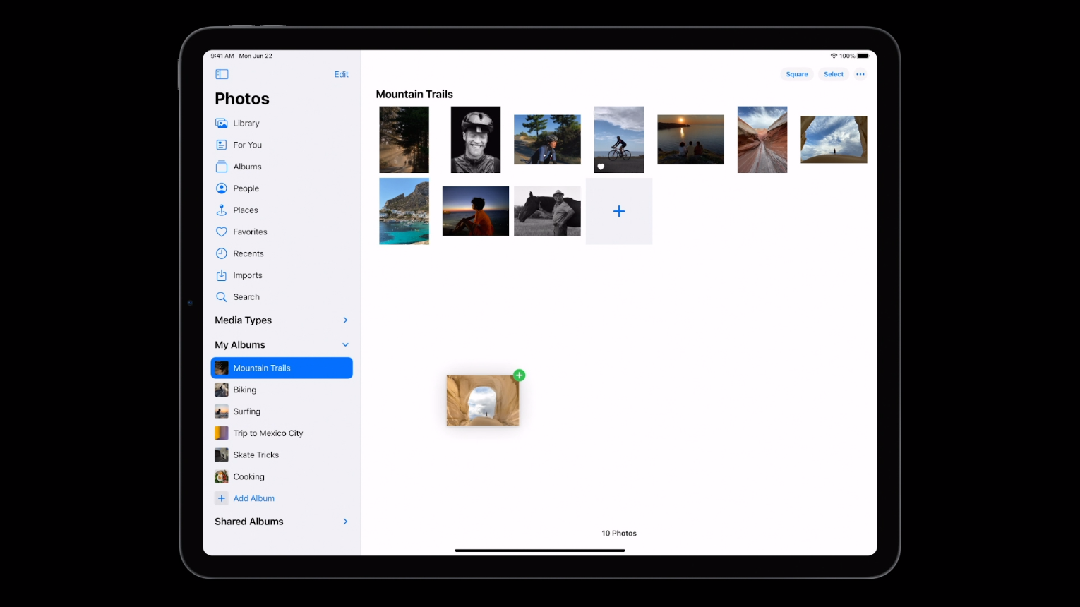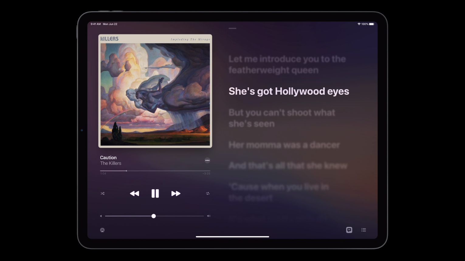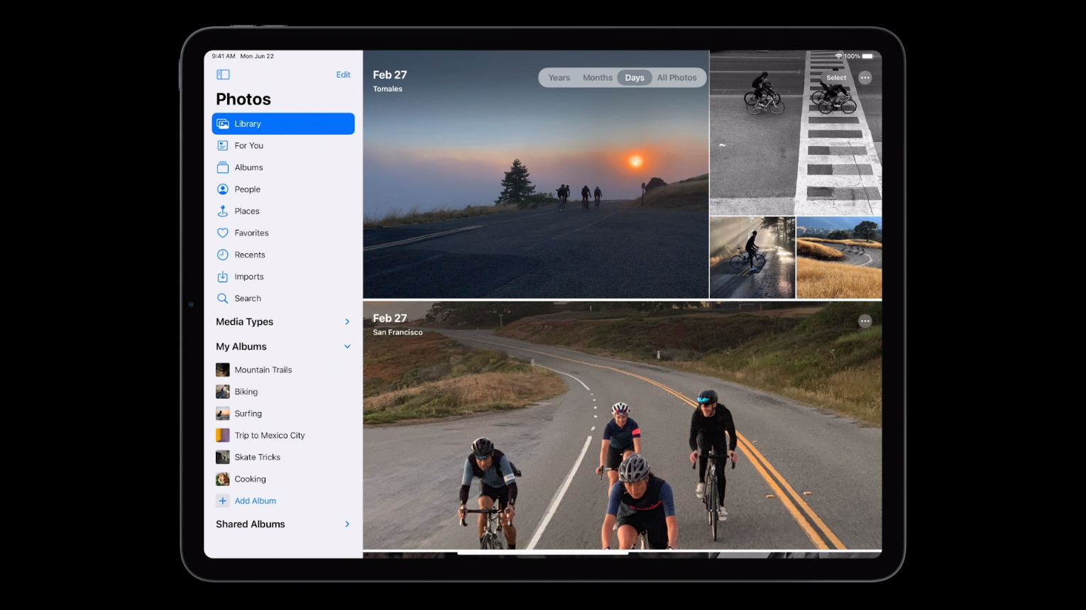 次はiPad OS。PhotosでD&Dできたり。Siriもコンパクト。着信などもコンパクトに。検索はSpotlight…?(Universal Searchらしい)