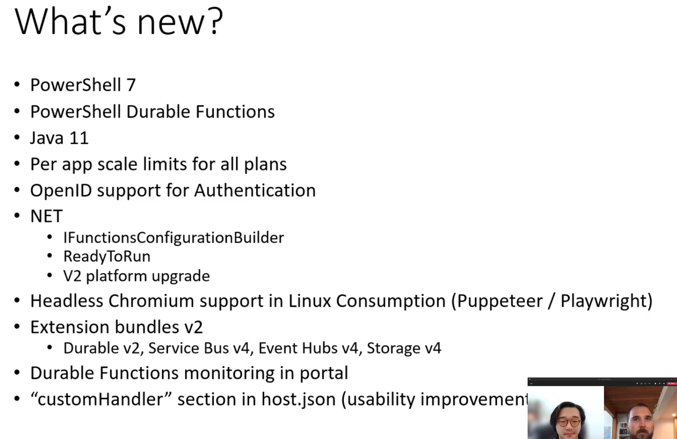 - .NETでReadyToRunがきたりDurable Functionsのモニターをポータルでできるようになったりするらしい。
