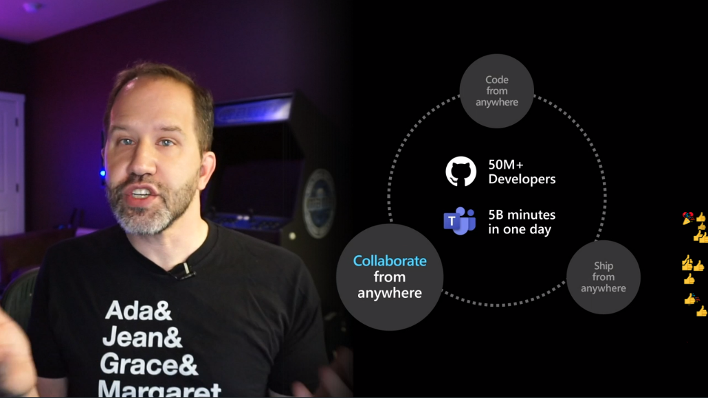 Microsoft Ignite 2020 Day 2、1つ目のKey SegmentはScott Hanselmanの「Are we there yet? App Development in Azure」です。女性プログラマー達なTシャツで登場なScott。