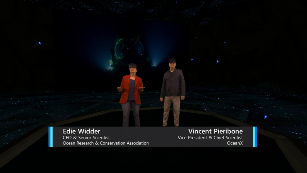 次は海洋世界(深海)を研究してるEdie氏とVincent氏の話。ストリーミングだと良さがわかりづらいかも。VRだともっときれいに見えてたかも。海洋のドローンで得た情報をMRで3Dで確認、調査。わかりやすい。![]()