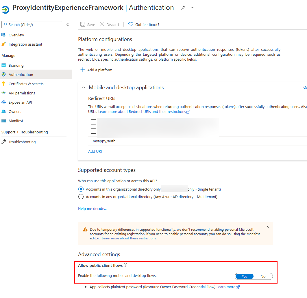 赤枠のところの、Allow public client flowsのところYesにしないとダメな手順をどうも忘れたか飛ばしたようです。![]()