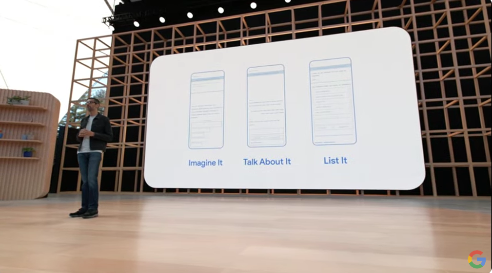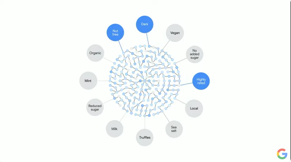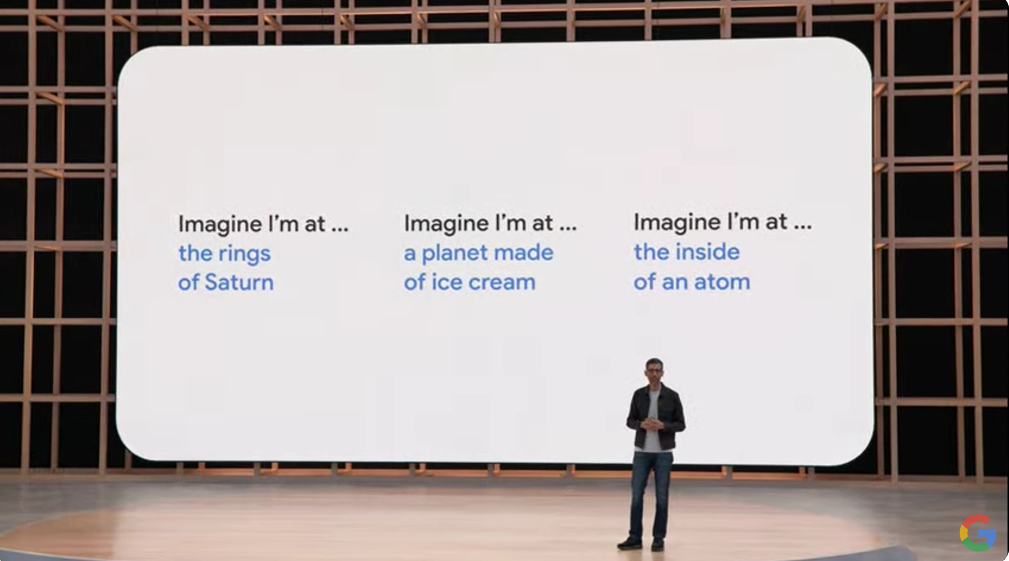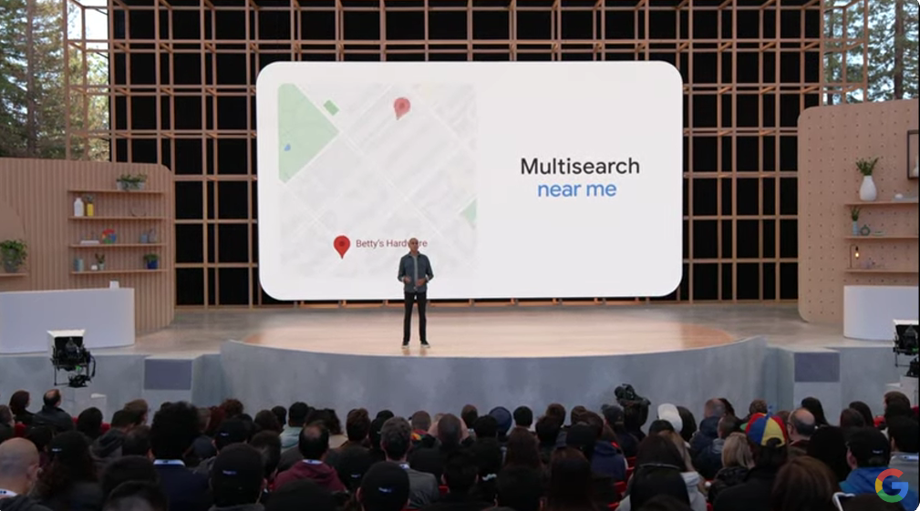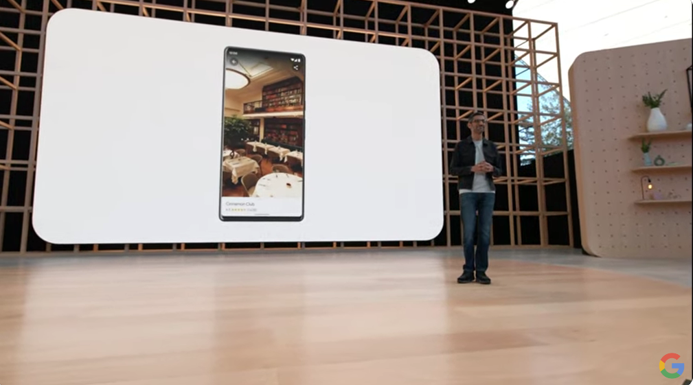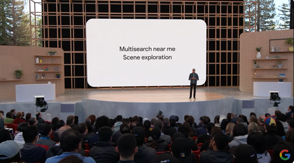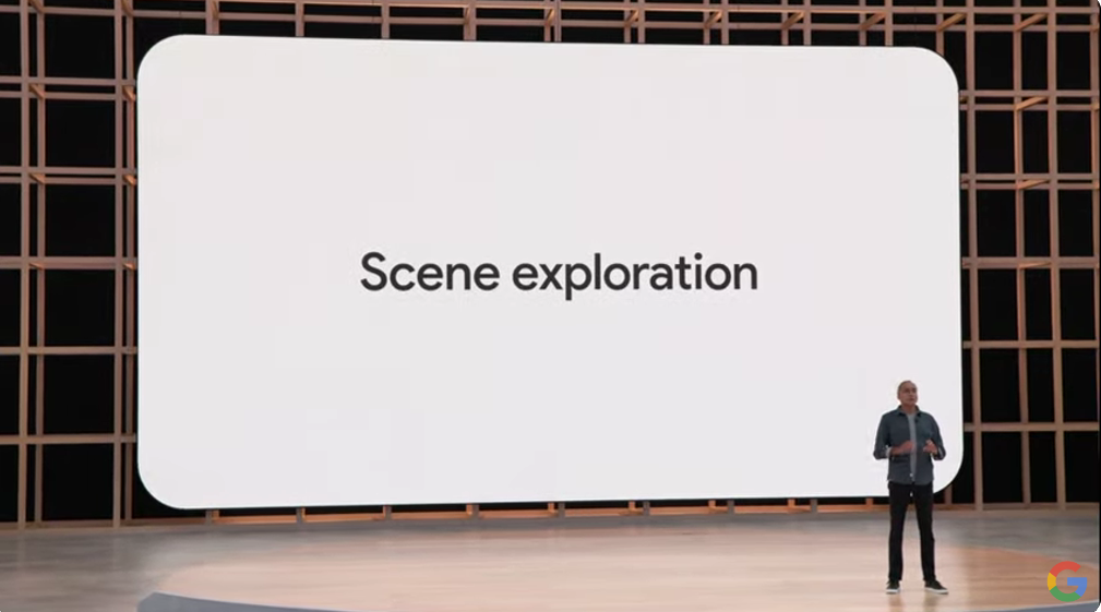 という感じでバラバラだったのをMultisearchで1つに。そこからMapsとつなげて近所で検索(near me)とか。それからシーン探索(Scene exploration)。Knowledge Graphも絡めてるんですね。![]()
