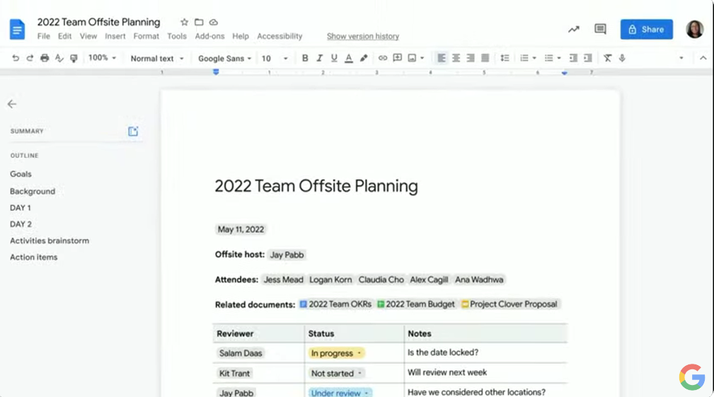 Google Workspaceの話題。Google Docsで自動的に概略まとめてくれる機能とか。チャットもハイライトをまとめてくれたり(過去さかのぼらなくても良いみたいな)。![]()