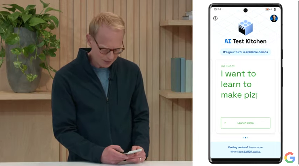 次はLaMDA2の話。言語モデルがさらに新しく。デモはAIテストキッチン。 AI Test Kitchen