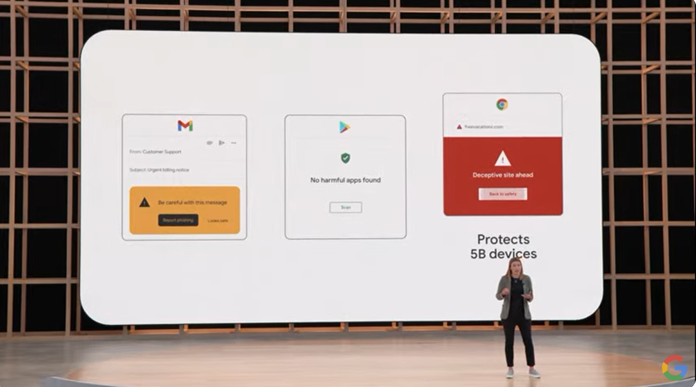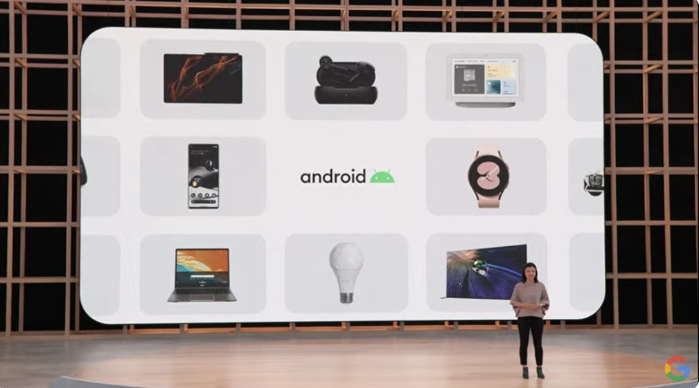 次はAndroid 13の話題ですね。Private Messagingとか。あと新しいGoogle Wallet。飛行機のチケットのほかにも車のキーやワクチン接種証明、それからIDも。Wear OSでの緊急連絡(SOS)や地震速報対応など。![]()