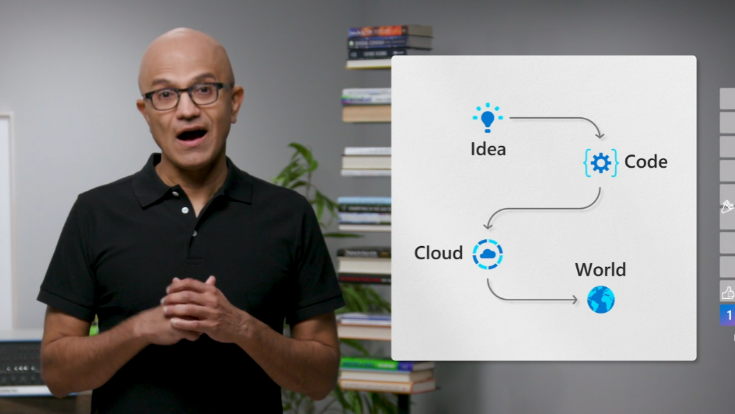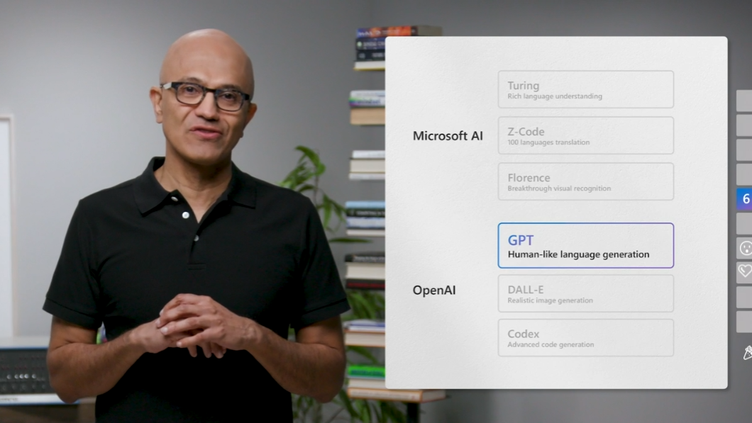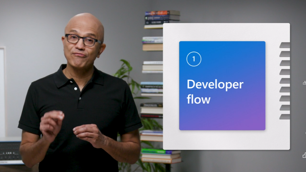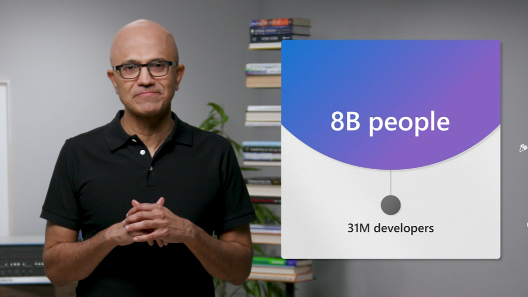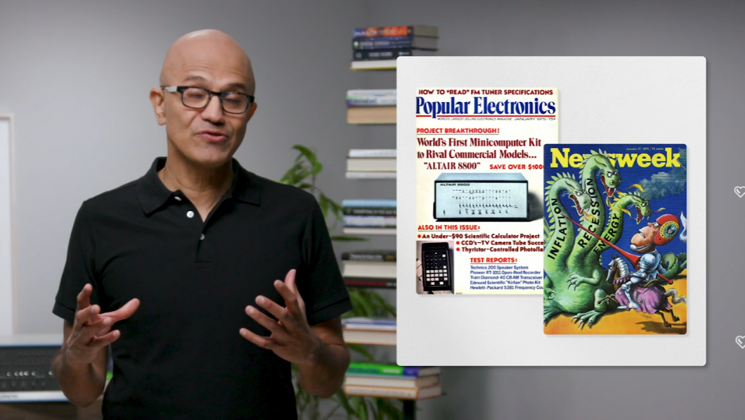 というわけでSatya Nadella氏によるキーノートです。ALTAIRの話からスタート、私たちは何を作ることがができる?より世界は開発者に何をつくってほしいか、作ってほしいものは何か?みたいな話。DALL·Eでイメージ画像を生成させたり(AIの伏線ですかね)。