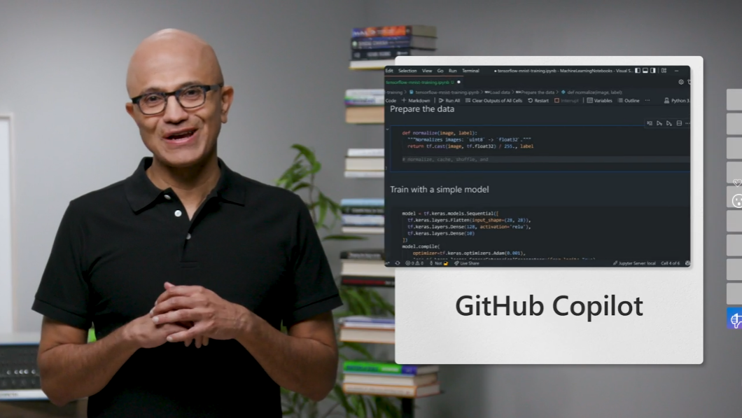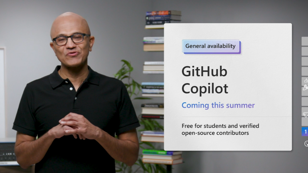 それからGitHub Copilot。夏の終わりぐらいにGAするらしい。学生とかOSSの人には無償提供するぽい。