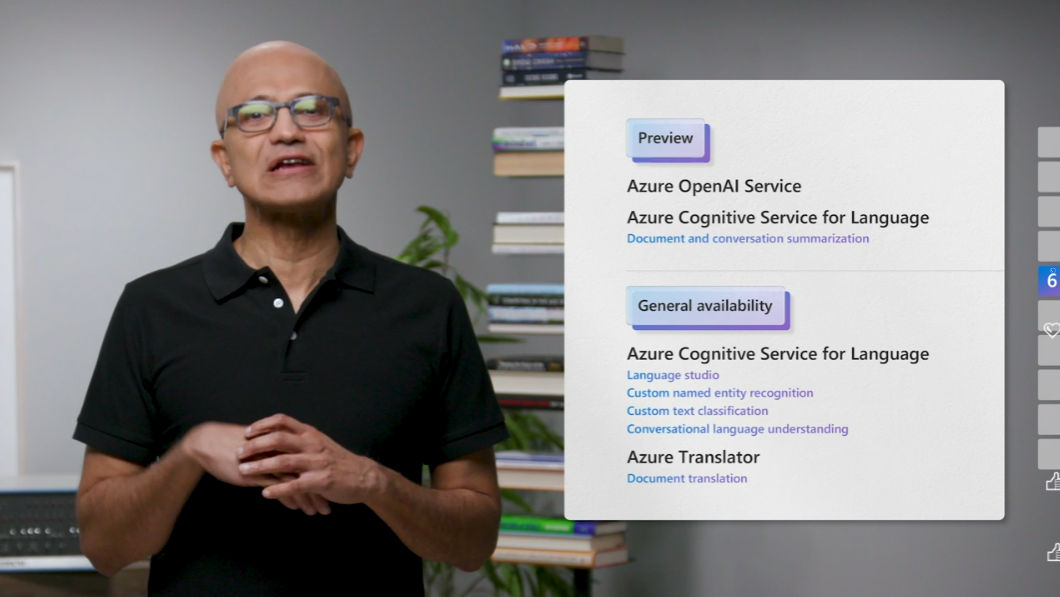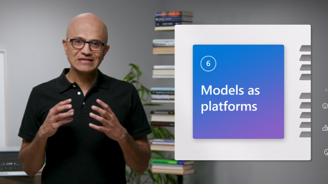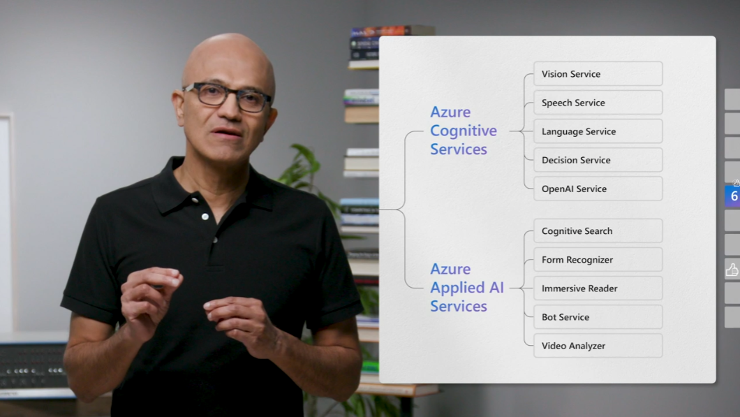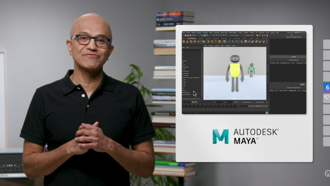 6つ目はプラットフォームとしてのモデル。GPT-3やDALL·Eなど巨大なモデルのほかにすぐに使える分野に応じたモデルやサービスをCognitive ServicesやApplied AI Servicesとして提供。Open AI ServiceなどがPreview、TranslatorなどがGAですね。Mayaで自然言語でコマンド実行して編集してるデモとかありました。