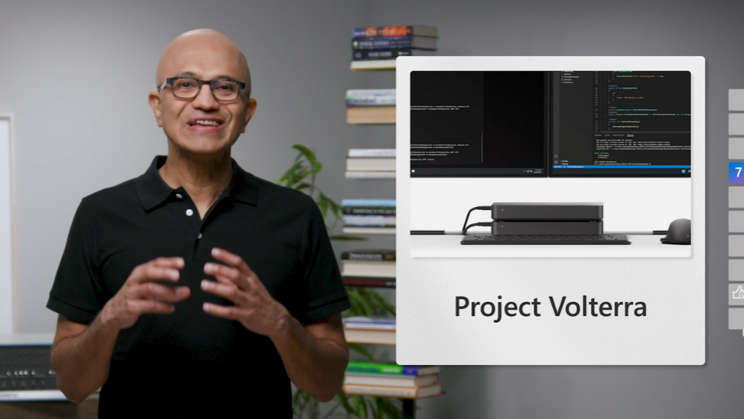7つ目はハイブリッドAI。スーパーコンピューター的な話。CPUやGPU、NPUに加えてAzureも計算資源として使えるようにしようという感じですかね。推論をどこでも。Project Volterraがアナウンス。Armネイティブな統合開発マシンですね。