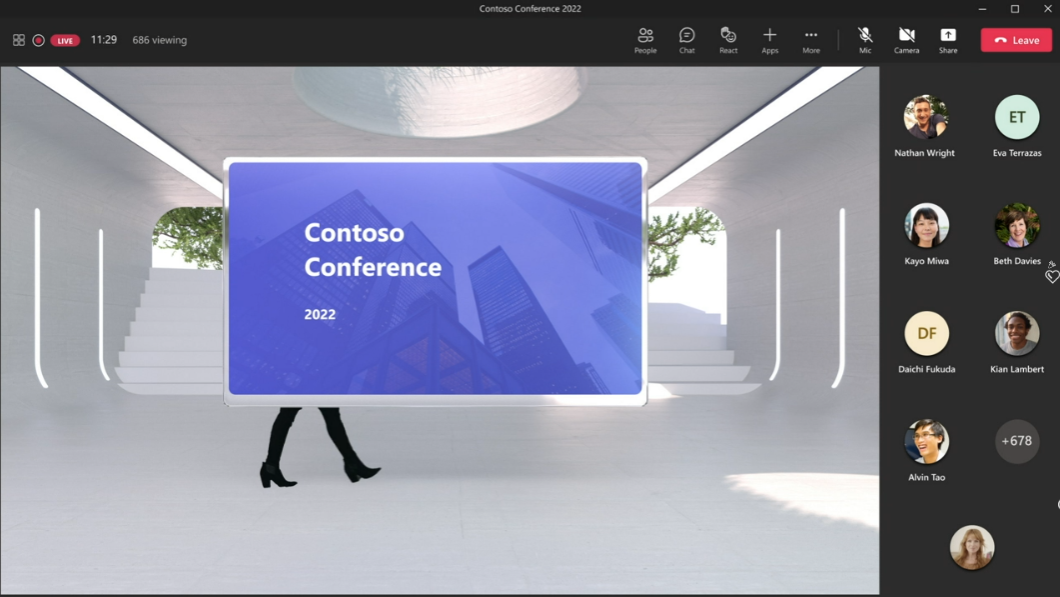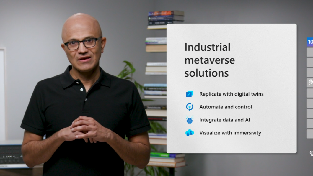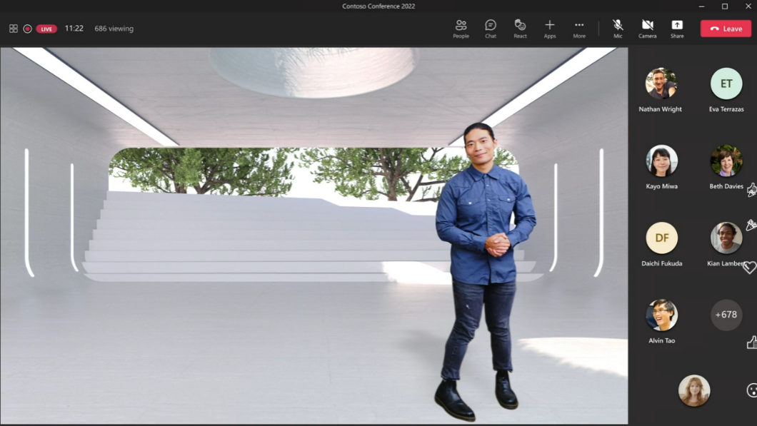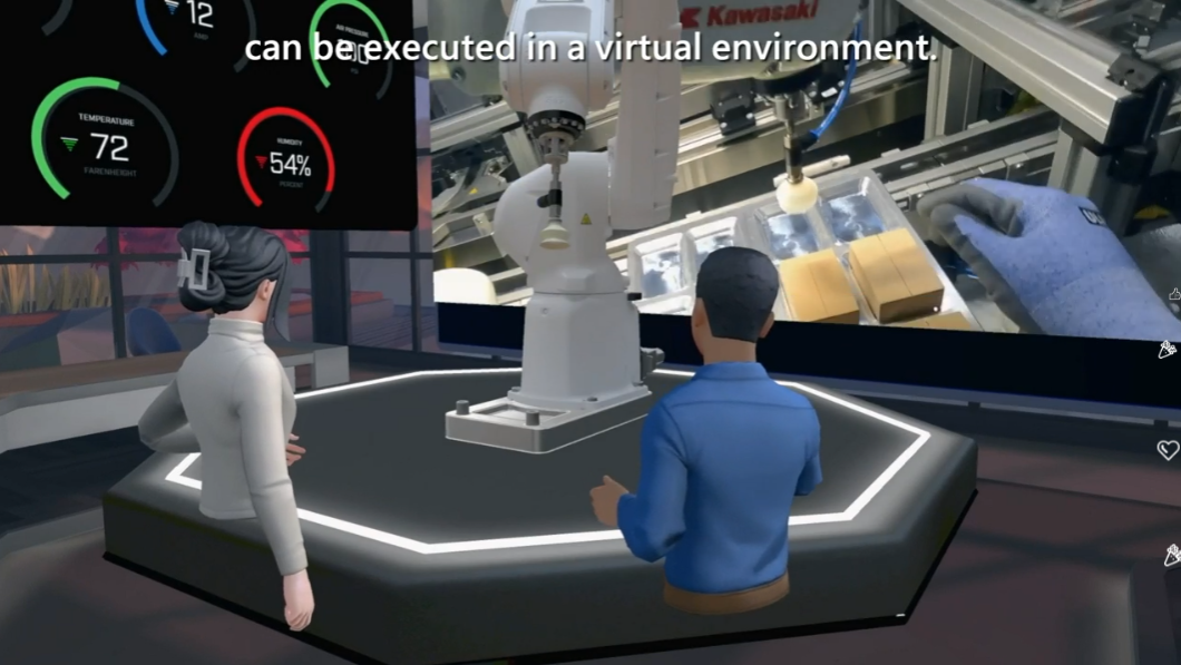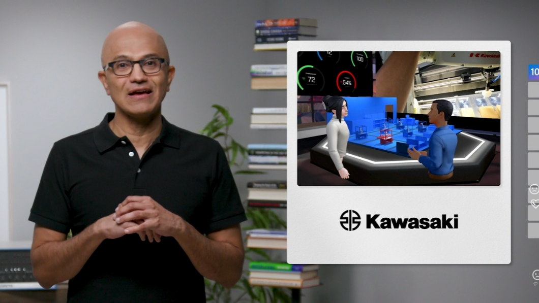 最後はメタバース。共同作業をリアルも仮想でも一緒にみたいな感じですね。それからMesh in Teams。Meshを独自に構築みたいな話もでてますね。ダボス会議でMesh使われるらしい。川崎重工の事例も。Meshやメタバース、デジタルツインの組み合わせ。
