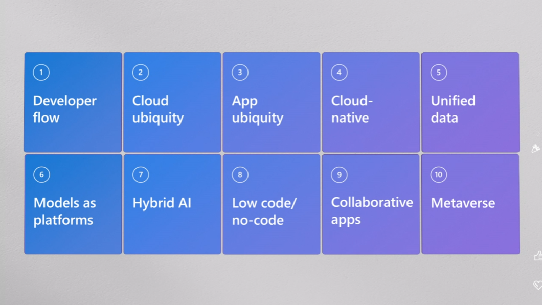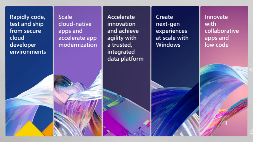 次はアプリユビキタス。Microsoft Storeに要件がだいぶ幅広くなってネイティブアプリなどもOK。広告(Ads)もきました。レベニューシェア100%らしい。Windows 365も先月発表されましたね。WindowsだけじゃなくXbox Cloud Gamingも含めてどこでも・どのデバイスでもみたいな環境がきてますね。