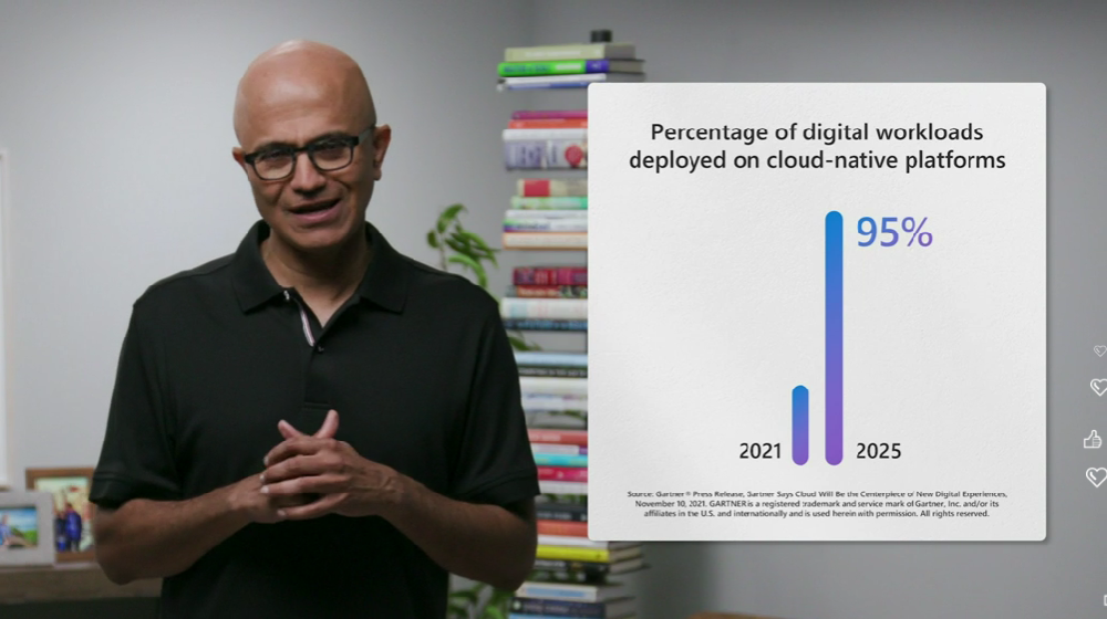 最初はクラウドへの移行。単なるリフト&シフトではなく3年後には新しいデジタルなワークロードの95%はクラウドネイティブなプラットフォームにデプロイされてるだろうとか。運用効率の向上、素早いデリバリ、コスト削減を支援。