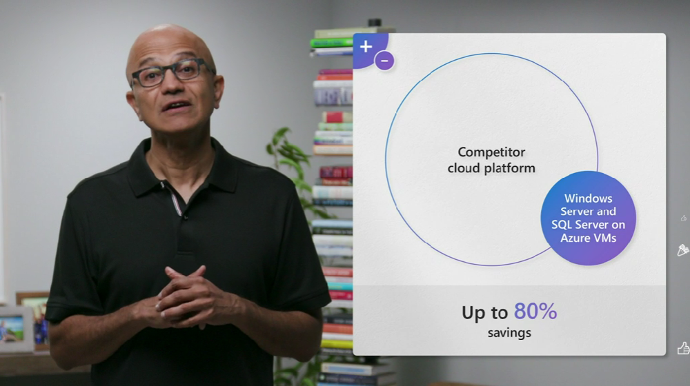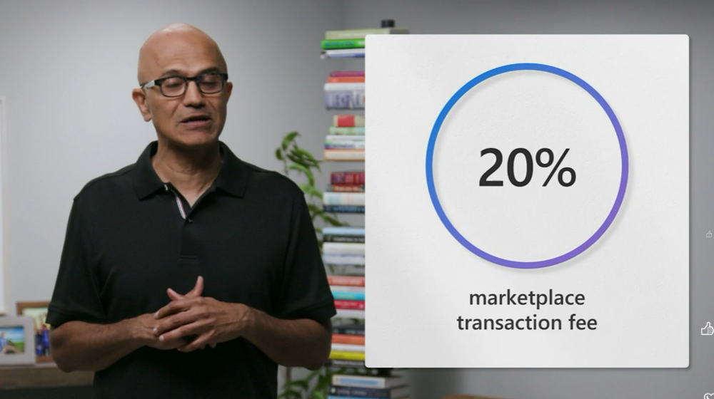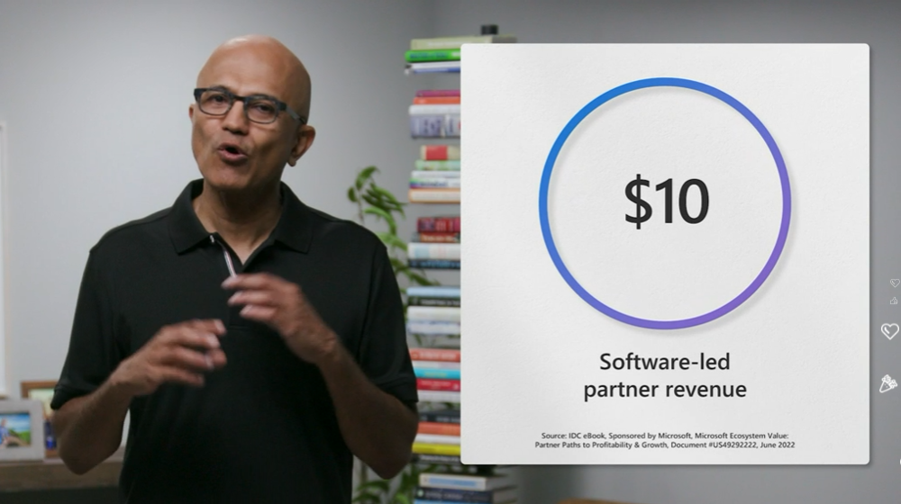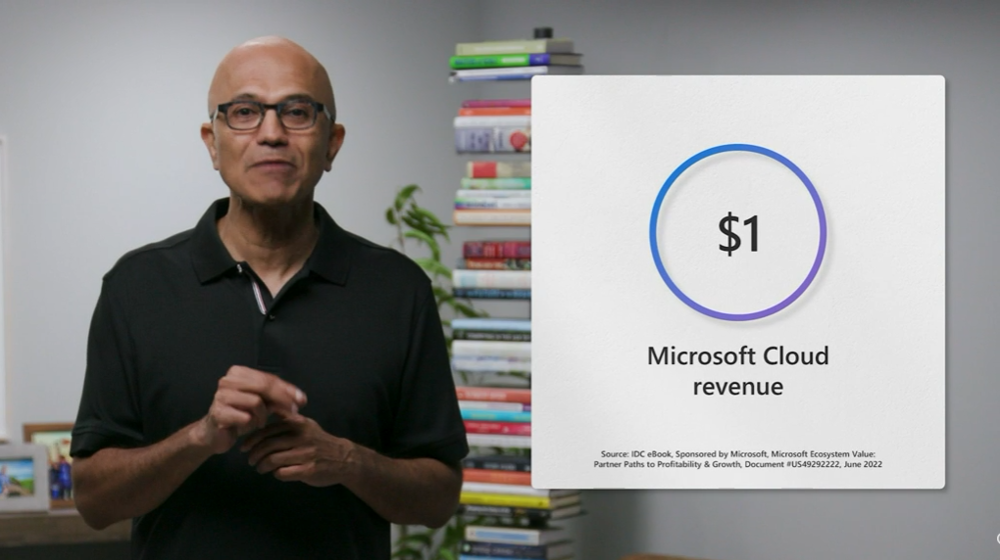 Marketplaceの手数料も20%から3%になりますね。Microsoftが(クラウドで)1ドル売り上げるとパートナーが10ドル収益を得られる(それぐらい活用すると価値があるプラットフォームという話)。