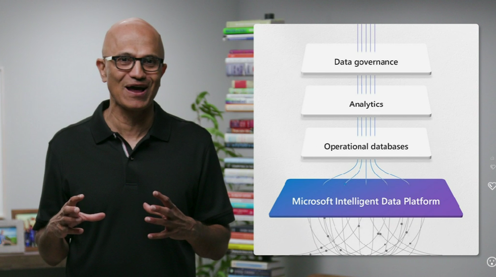 3つ目はデータとAIモデル。2025年にはAIが10%ぐらいコード生成してるらしい予測。データストアから分析、ガバナンスまで全部カバーしてるMicrosoft Intelligent Data Platformを提供中。データ追跡と管理にかかる時間やコストを削減。![]()