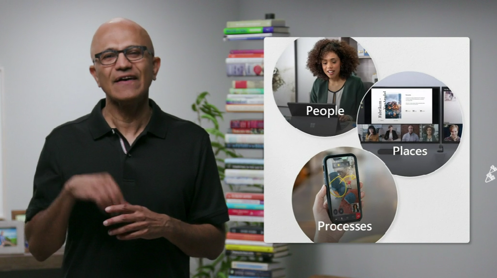 場所についてはリモート+オフィスのギャップを埋めたり。Teams Roomや関連するハードウェア(カメラとか)など。Windows 365やAzure Virtual DesktopでPCも場所を選ばずみたいな。(日本では関係ないけど)米国政府向けWindows 365 Governmentとか。