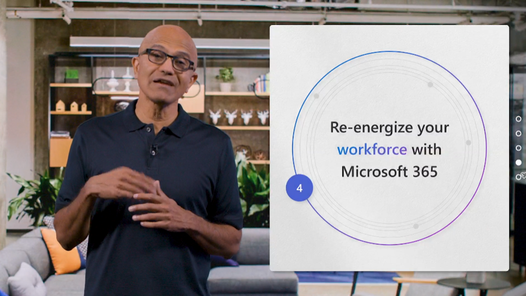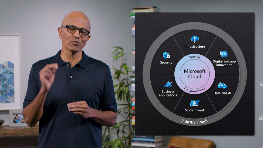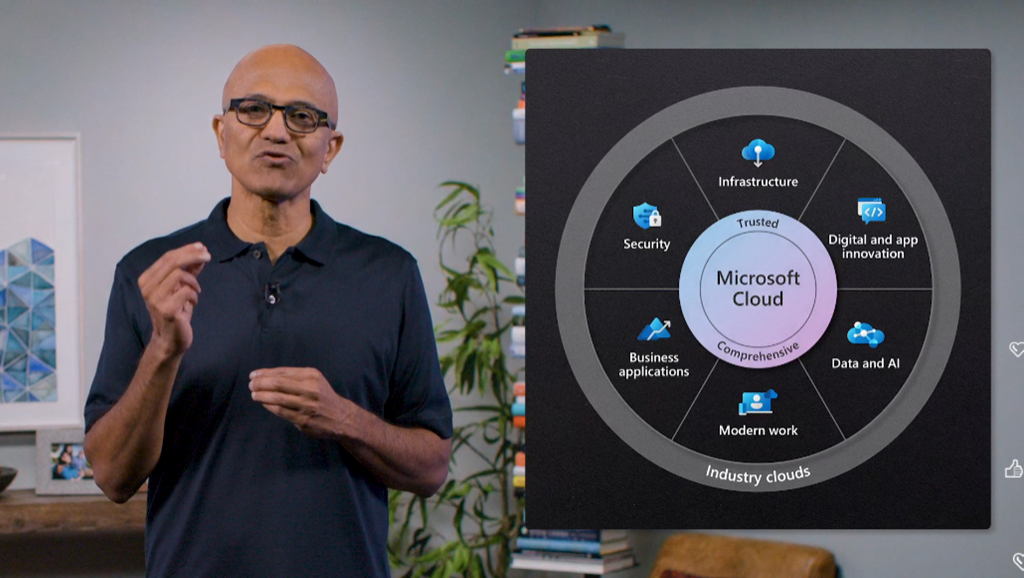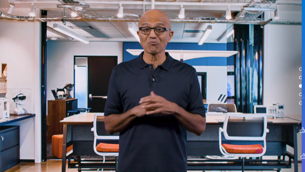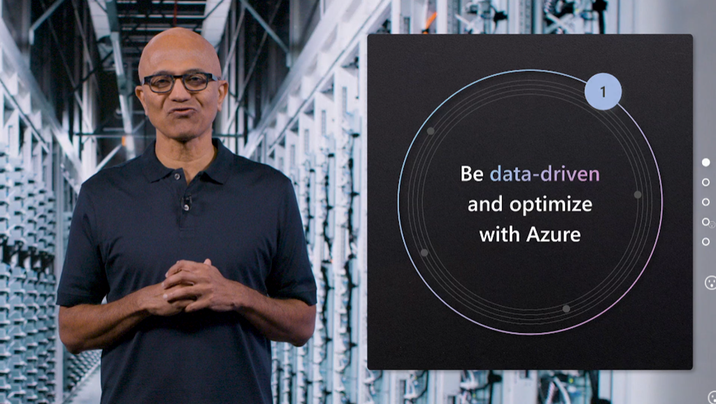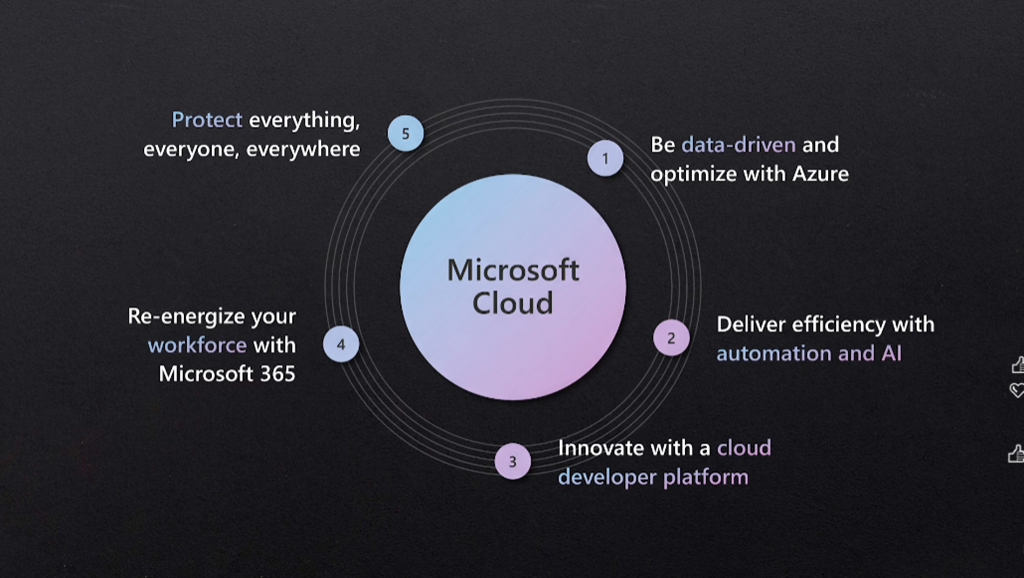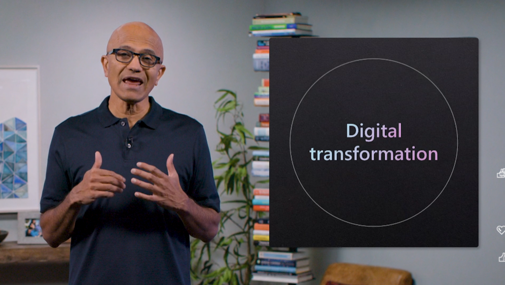 というわけでSatya氏のキーノートです。みんなは少ない労力でより多くのことを行うことができるチェンジ・エージェント。それにはDXが大事ということで今回のIgnite KeynoteではDX化の柱になる5つの領域について紹介。