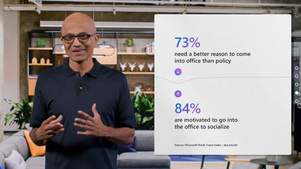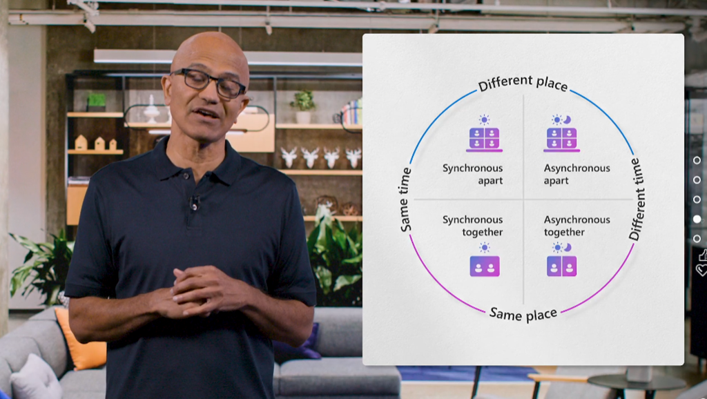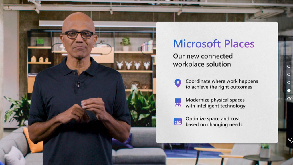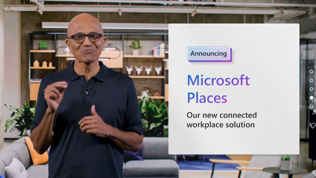 それから場所が大事ということでMicrosoft Placesがでました。物理的な場所と電子的な場所で共同作業するための場所や支援をするサービスという感じですかね。