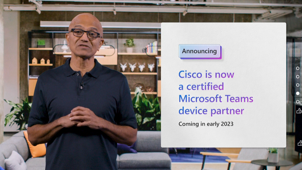 CiscoはパートナーとしてTeamsで使えるカメラなどのデバイスを提供。