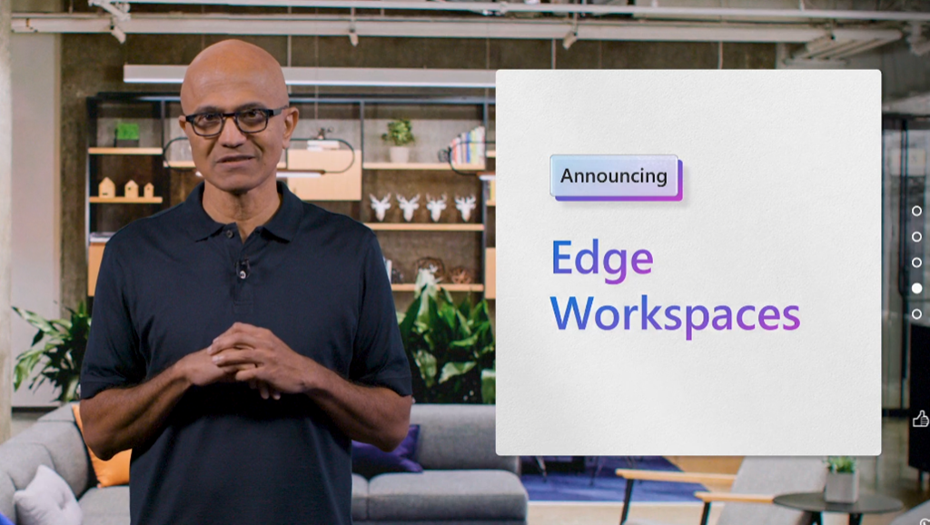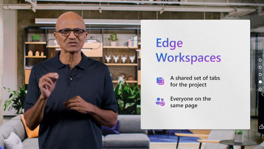 Teamsの次はVivaの紹介とEdgeの話。Defenderの話とEdge Workspacesということでブラウザ内で共同作業ができる機能がアナウンス。
