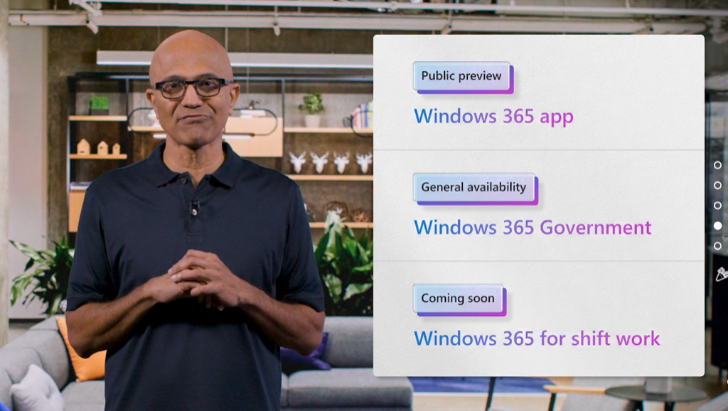 PC・Windows。Windows 11の機能もたくさん増えましたね。Windows 365 appやGovernment向け、Shift Work向けなども出る予定です。