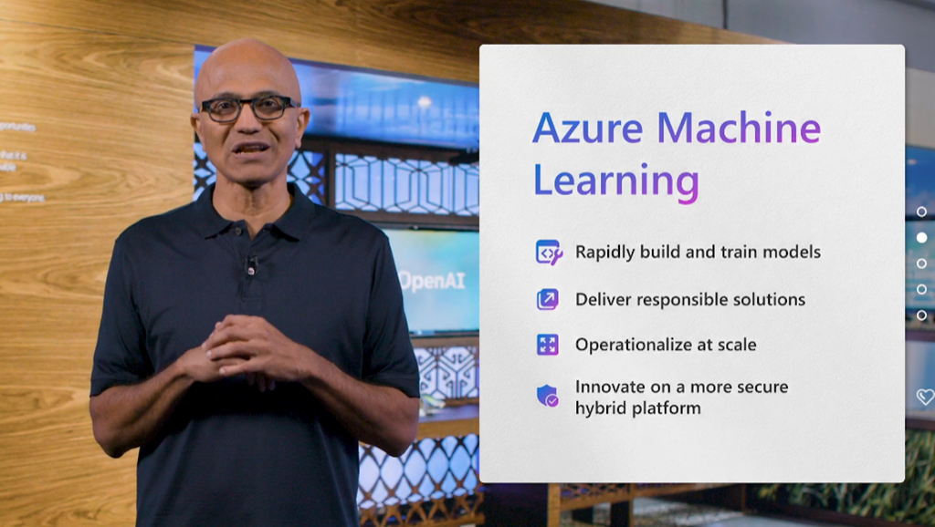 2つ目は自動化とAIを使った効率化とかの話。大規模モデルをAzureでトレーニングしてた話とか。Azure Container for PyTorchがアナウンス。モデルの性能や構造化を把握するためのResponsible AIダッシュボードなどがでました。