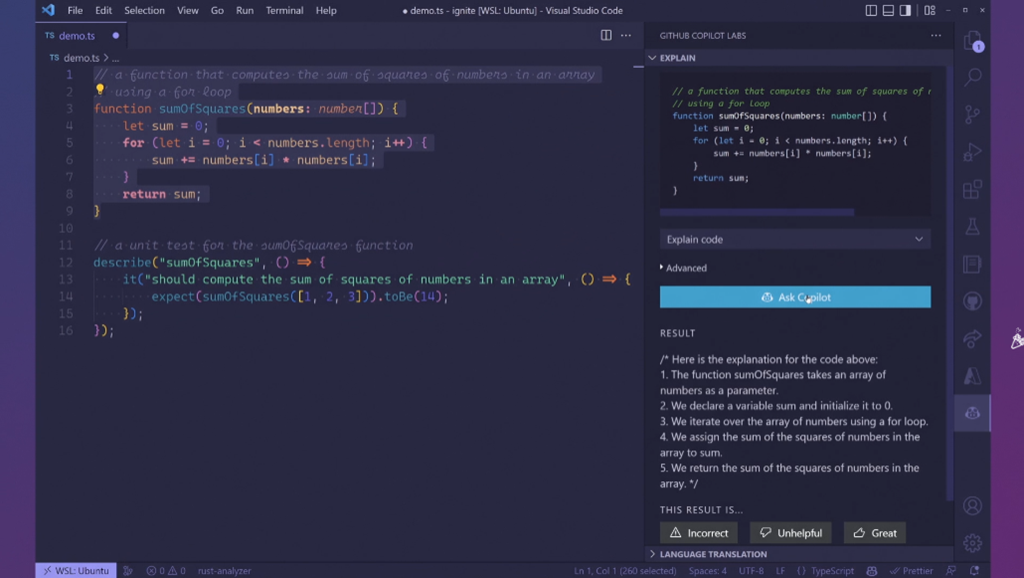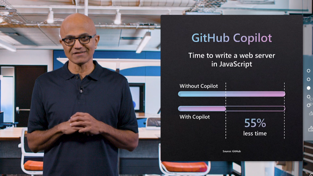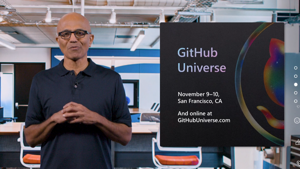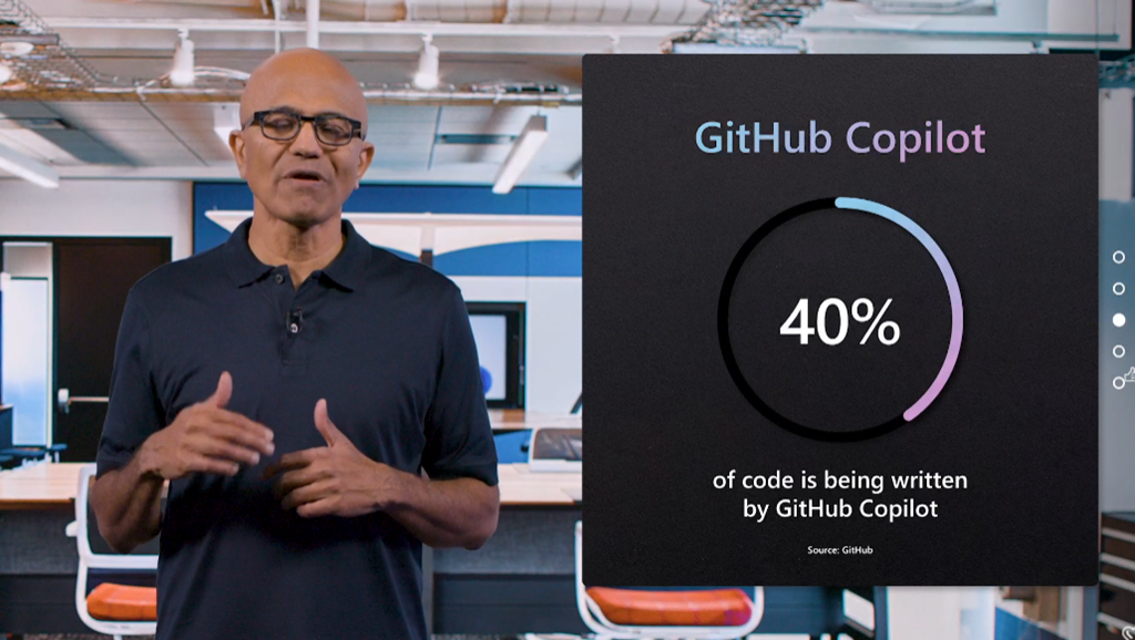 3つ目。クラウド開発者プラットフォームについて。コードをサジェストしてくれるCopilotの現状のついて。結構使われてるっぽい。GitHub Universeもお楽しみに。
