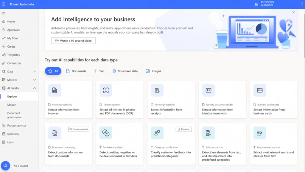 Inspireでは手書きデザインからフォームを起こしたり、Power Appsで自然言語でアイデアを入れたら実現できるフォームをサジェストして実装してくれたりといったアップデートがありました。今回はPower Automateで同じくほしいフローを記述したら実現できるフローを提示して実装してくれる機能がアナウンスされました。これらのAI BuilderはPower Platformへたくさん提供中。