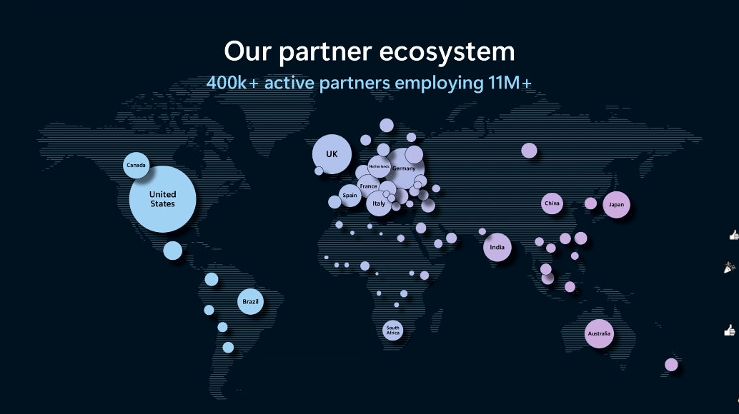Microsoftの差別化要因:広範な商業ポートフォリオ、プラットフォームアプローチ、パートナーと世界の成功に合わせたビジネスモデル、信頼を築く。