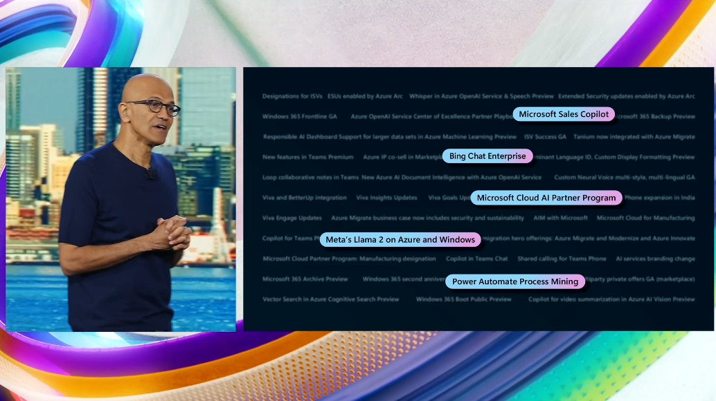 Copilotなどどういう構成で構築しているか、Buildでも発表したCopilot Stackのようにしている。それからパートナーのエコシステムとあわせてAIアドバンテージになる。今回40以上のアップデートがある。キーノートではその中のいくつかを紹介。![]()