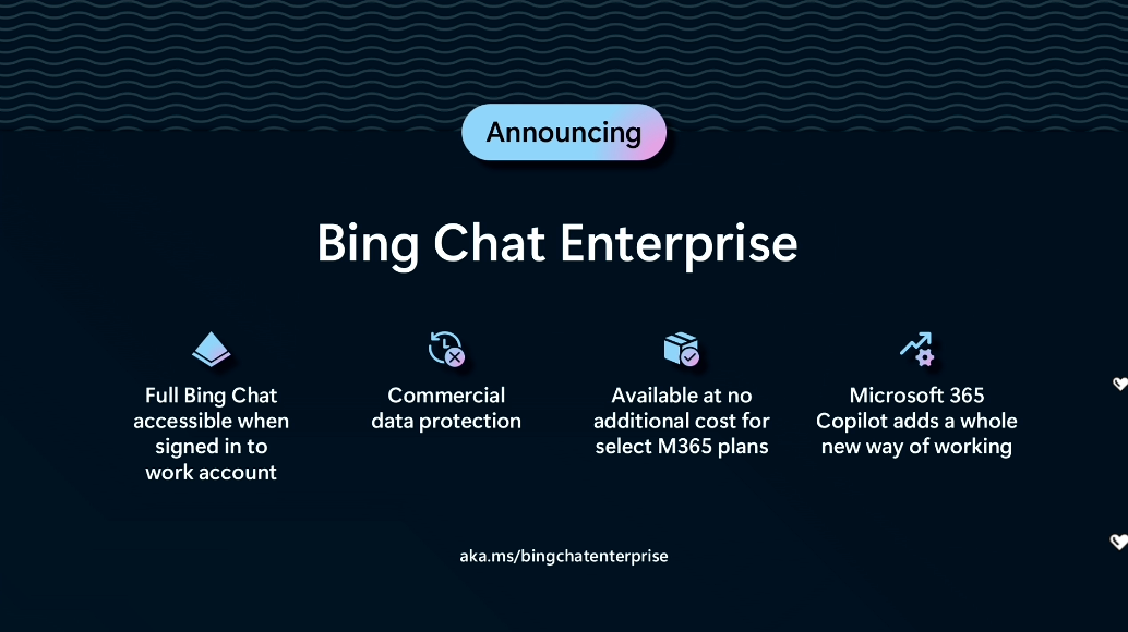 利用者としてはBing Chat EnterpriseとCopilotでかなり助かるようになりそうで楽しみです。使いこなさないとね。