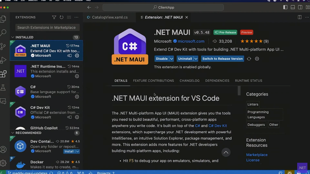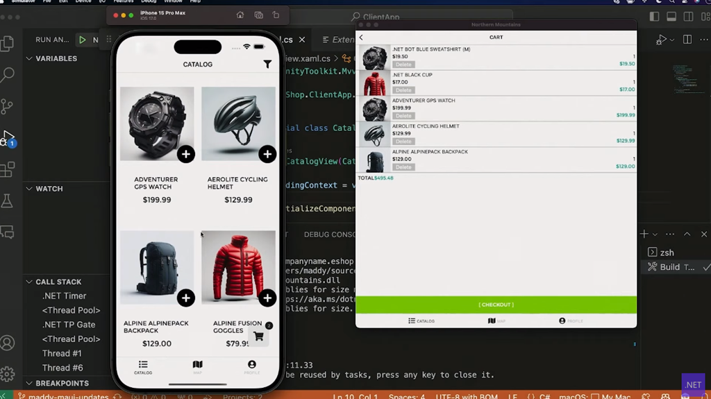 次はクライアント。MAUIの話ですね。パフォーマンス向上などなど。Visual Studio CodeにC# Dev Kitがきてますが、.NET MAUIも対応みたい。macをターゲットにしてデバッグも可。DesktopだけフラグとかマルチプラットフォームなUnitTestとかも。![]()