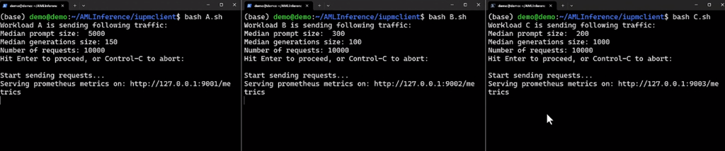 3つのタイプ(プロンプトが重くて応答が小さいもの、バランス、プロンプトが軽くて応答が重いもの)で実際に試してみる。Grafanaで結果みると3つとも100%近い性能(秒あたりのトークン数)でできてる。