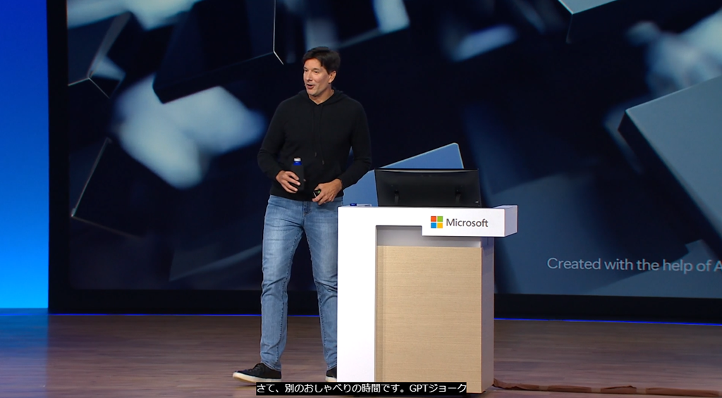 ChatGPTジョーク。Markが考えたんじゃないよ!あとジョークのあと会場映すのわかってるカメラワークですね。