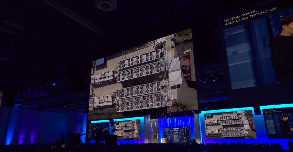 最初のトピックはサスティナブルデータセンター。ちょいちょいChatGPTが生成した ジョークを挟んでましたね(?)。PUEもかなり下がってきましたね。もう第11世代なんですね。