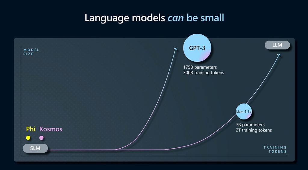 Microsoft ResearchのPhi-1は13億パラメータでやってみたLLM。それでも他のモデル並みな性能はだせそうだ。マルチモーダルなKosmos-2(16億パラメータ)でも同様。