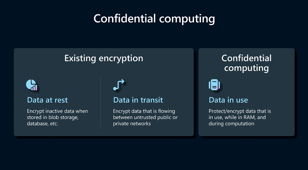 最後はConfidential Computingについて。AI部分においてはモデルの保護、データの保護、それらを占有じゃなくて共有部分でも保護できるようにということを目指してる。デモは割愛(時間が押したのかな)。
