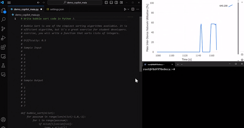 デモはGitHub Copilotで。推論させたときにMaia(へのネットワーク転送が)がどれぐらい使ってるか見てる感じ。