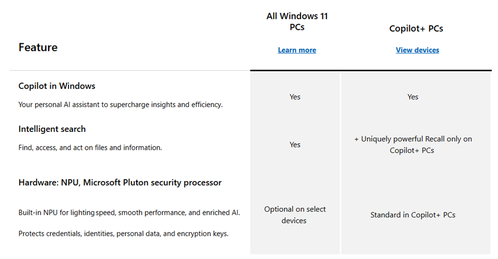 → Copilot+PCsを名乗るにはRecallと呼ばれる新しいインテリジェント検索にも対応してること、NPUがオプションではなく必須みたいですね。![]()