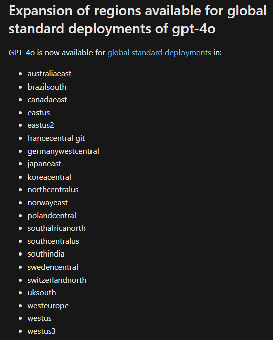 - GPT-4oのグローバルスタンダードで使えるリージョンがとても増えました。(東日本もある)