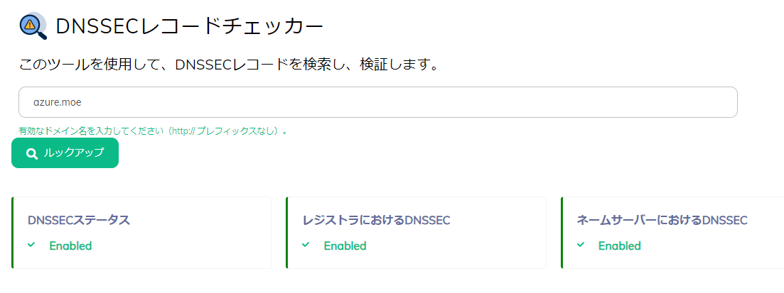 Message: DNSSEC is not enabled for DNS zone 'azure.moe' in resource group 'azuremoerg' of subscription '____________'.