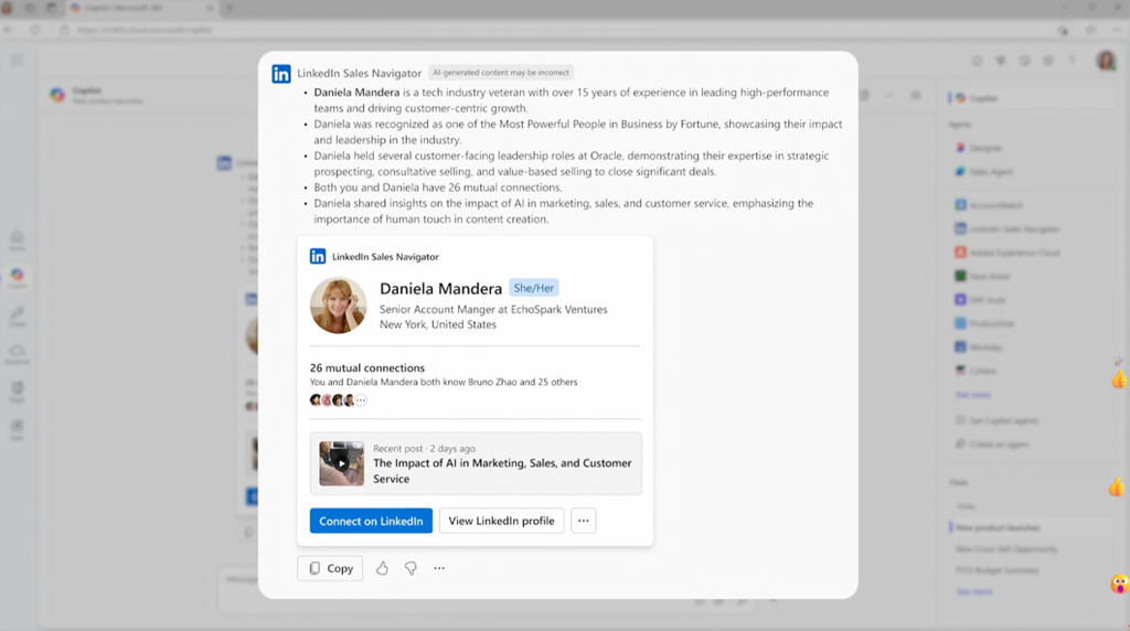 最初はCopilot。CopilotはAIのためのUI、という感じで最近言い始めてますね。Copilot StudioでAgent作ったりもできるし、全体をCopilot Control Systemで管理も。Copilotをつかって 毎日30~60分の時間を節約とか事例もいろいろ。![]()
